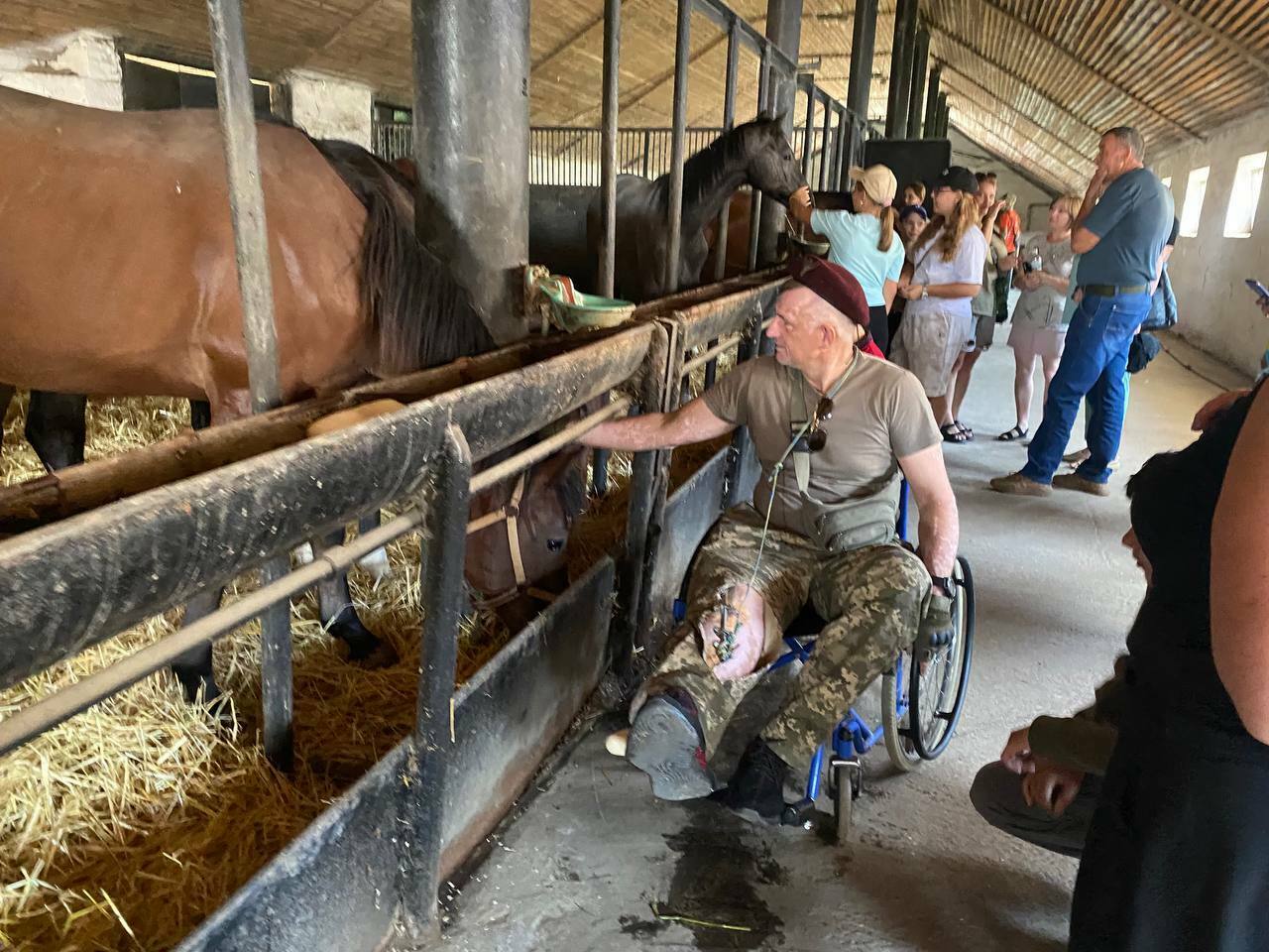 Шполянські захисники України із сім’ями побували на кінному заводі у Жашкові, а також відвідали Національний дендрологічний парк «Софіївка». На фото – поранений військовий, мешканець Шполянської громади Юрій Ремез, який виявив бажання взяти участь у поїздці, незважаючи на те,  що лише тиждень перед цим переніс складну операцію