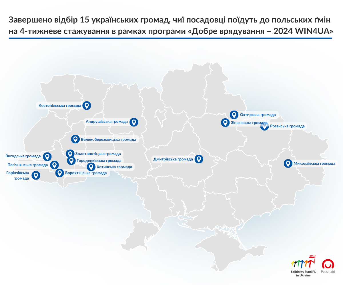 Відібрано 15 громад, представники яких поїдуть до польських ґмін на 4-тижневе стажування в рамках програми «Добре врядування – 2024 WIN4UA»