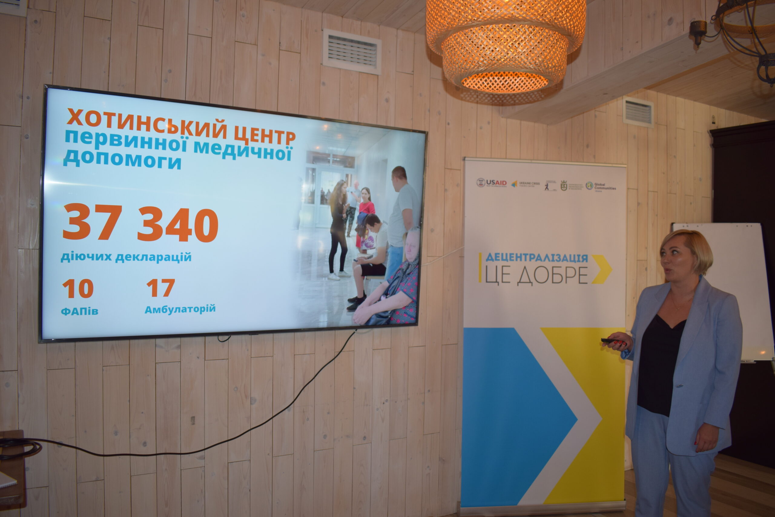 У Хотині учасники відвідали місцевий центр первинної медичної допомоги, що включає 10 ФАПів і 17 амбулаторій, та багатопрофільну кластерну лікарню, яка має 11 стаціонарних та 7 амбулаторних відділень. У закладах приділяють багато уваги безбар’єрному доступу, ментальному здоров’ю та комфортному перебуванню пацієнтів. Сюди приїжджають на лікування мешканці не тільки Чернівецької, а й Тернопільської та Хмельницької областей.