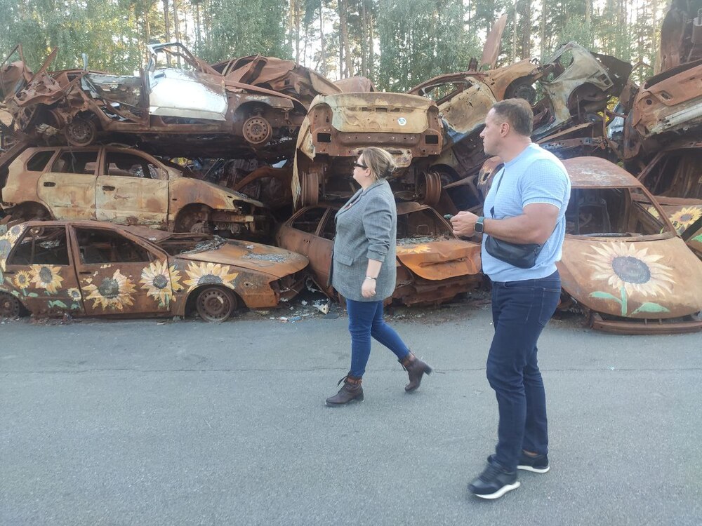Учасники візиту відвідали Ірпінський історико-краєзнавчий музей та Меморіальний комплекс на виїзді до Романівського мосту, який з’єднує Бучу та Ірпінь з Києвом. Він був підірваний на початку повномасштабного вторгнення і більш відомий як «дорога життя», а зараз неформально називається «кладовищем машин». На його місці зараз інсталяція з розстріляних окупантами автомобілів цивільних мешканців, над проєктом упорядкування якої зараз також працюють.