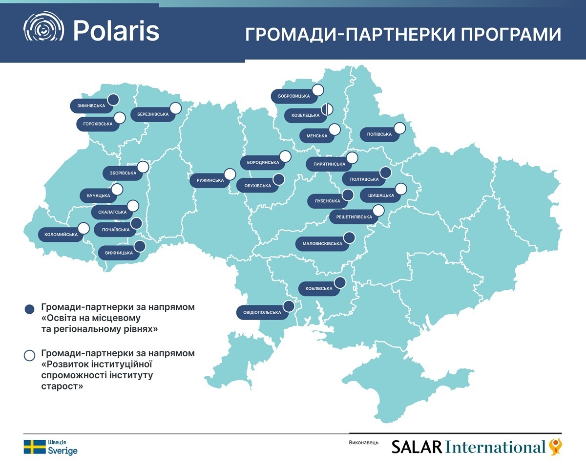 Наразі до співпраці з Polaris долучилися 10 громад за напрямом «Освіта на місцевому та регіональному рівнях», які отримають підтримку у формуванні ефективної освітньої мережі та впровадженні реформи старшої школи, та 15 громад за напрямом «Розвиток інституційної спроможності інституту старост», які отримають допомогу у вдосконаленні роботи старостинських округів, покращенні надання послуг і посиленні спроможності старост для підтримки місцевого самоврядування.