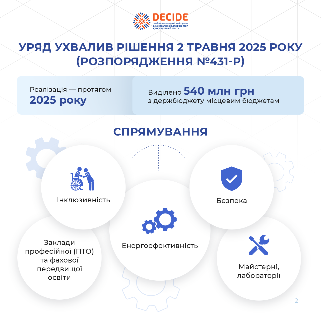 Уряд виділив 540 млн гривень на модернізацію освітнього простору в закладах професійної та фахової передвищої освіти.