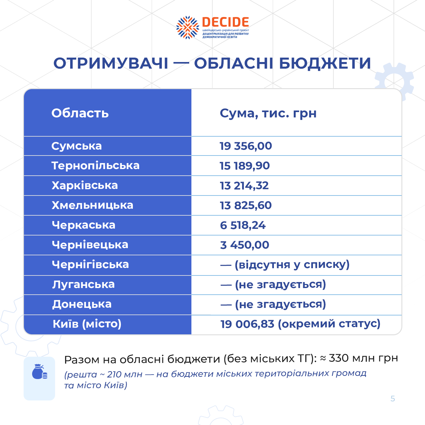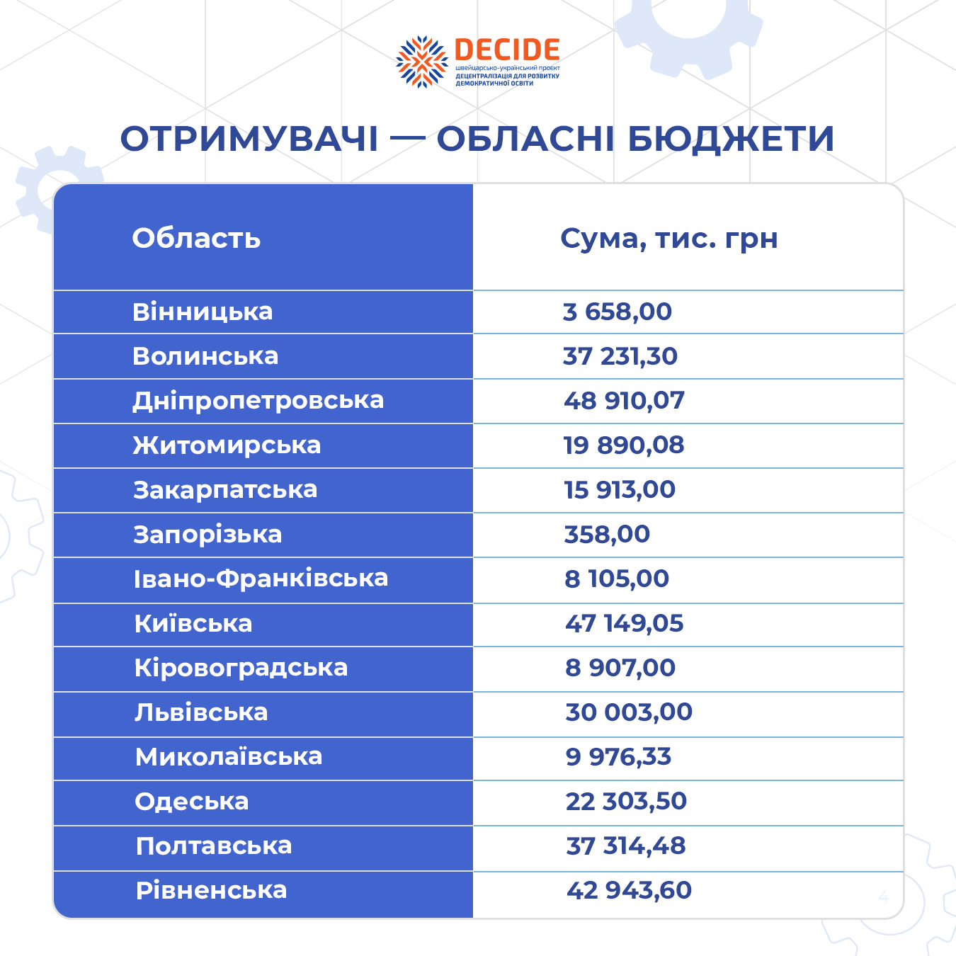 На що саме спрямують кошти з держбюджету та які області і громади отримають фінансування — в інфографіці від експертів Швейцарсько-українського проєкту DECIDE.
