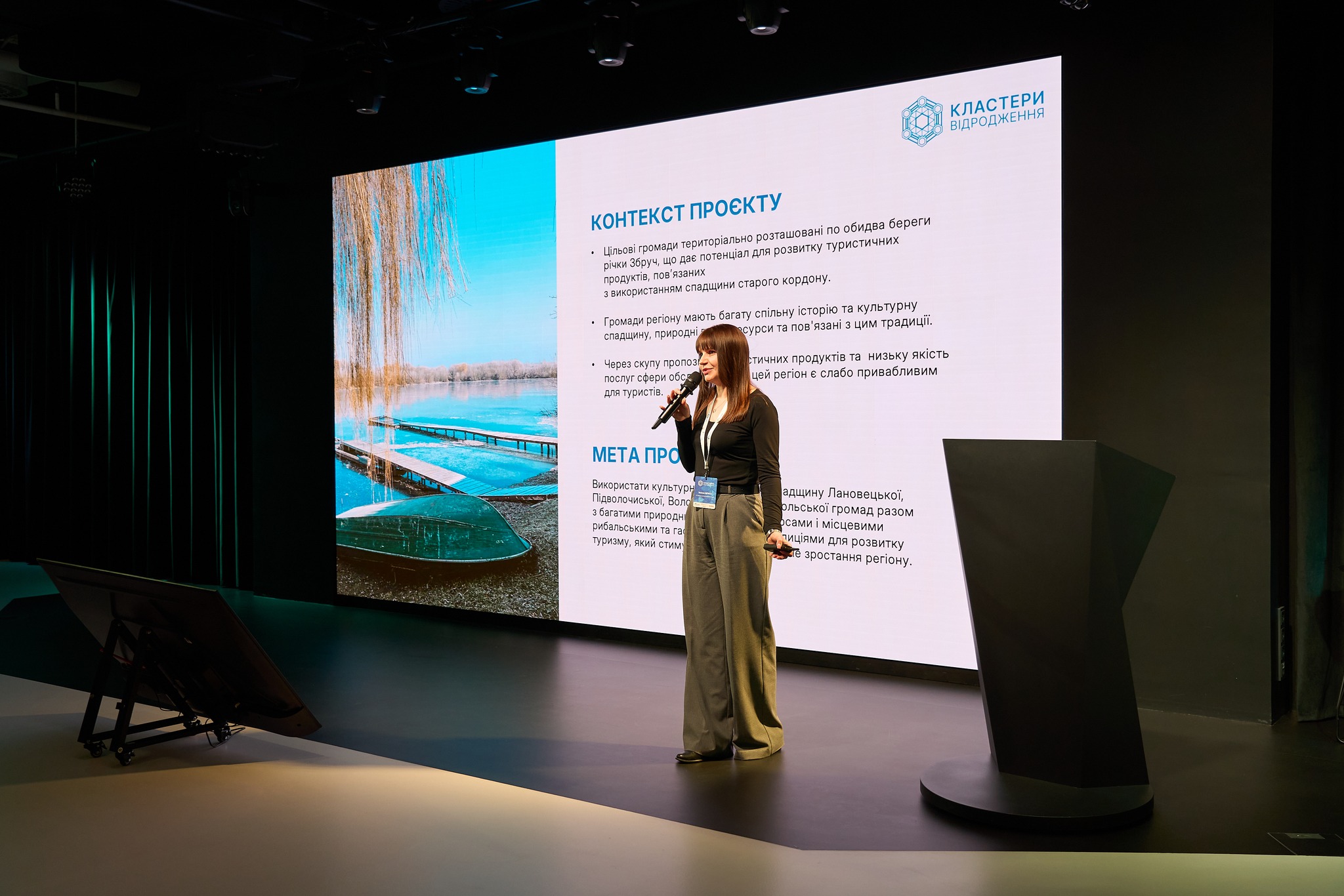 Зокрема, вона нагадала, що грантова програма «Кластери Відродження» є частиною компоненту проєкту UCORD, спрямованого на посилення соціальної згуртованості через культуру та креативні індустрії. Також зазначила, що надзвичайно складний відбір заявок проводила конкурсна комісія у складі 6-ти міжнародних та українських експертів. У результаті двохетапного відбору визначили 8 проєктів-переможців з загальним бюджетом 1,5 мільйони швейцарських франків, які будуть впроваджуватися за підтримки проєкту UCORD.