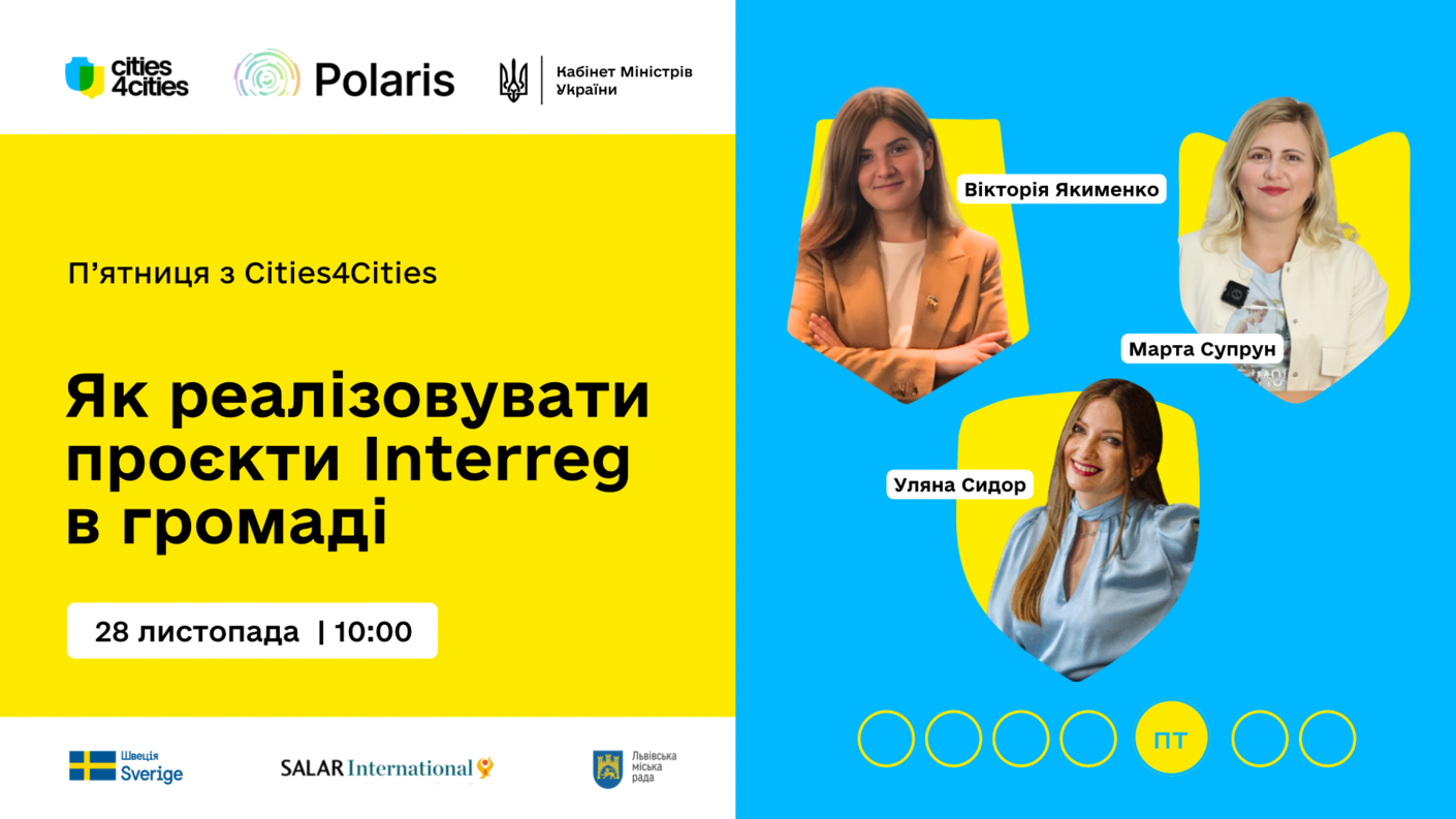 Що потрібно знати якщо ви на самому початку цього шляху? – Про це і не тільки поговоримо 28 листопада на П’ятниці з Cities4Cities разом із представницями Департаменту міжнародної технічної допомоги СКМУ Вікторією Якименко та Уляною Сидор.