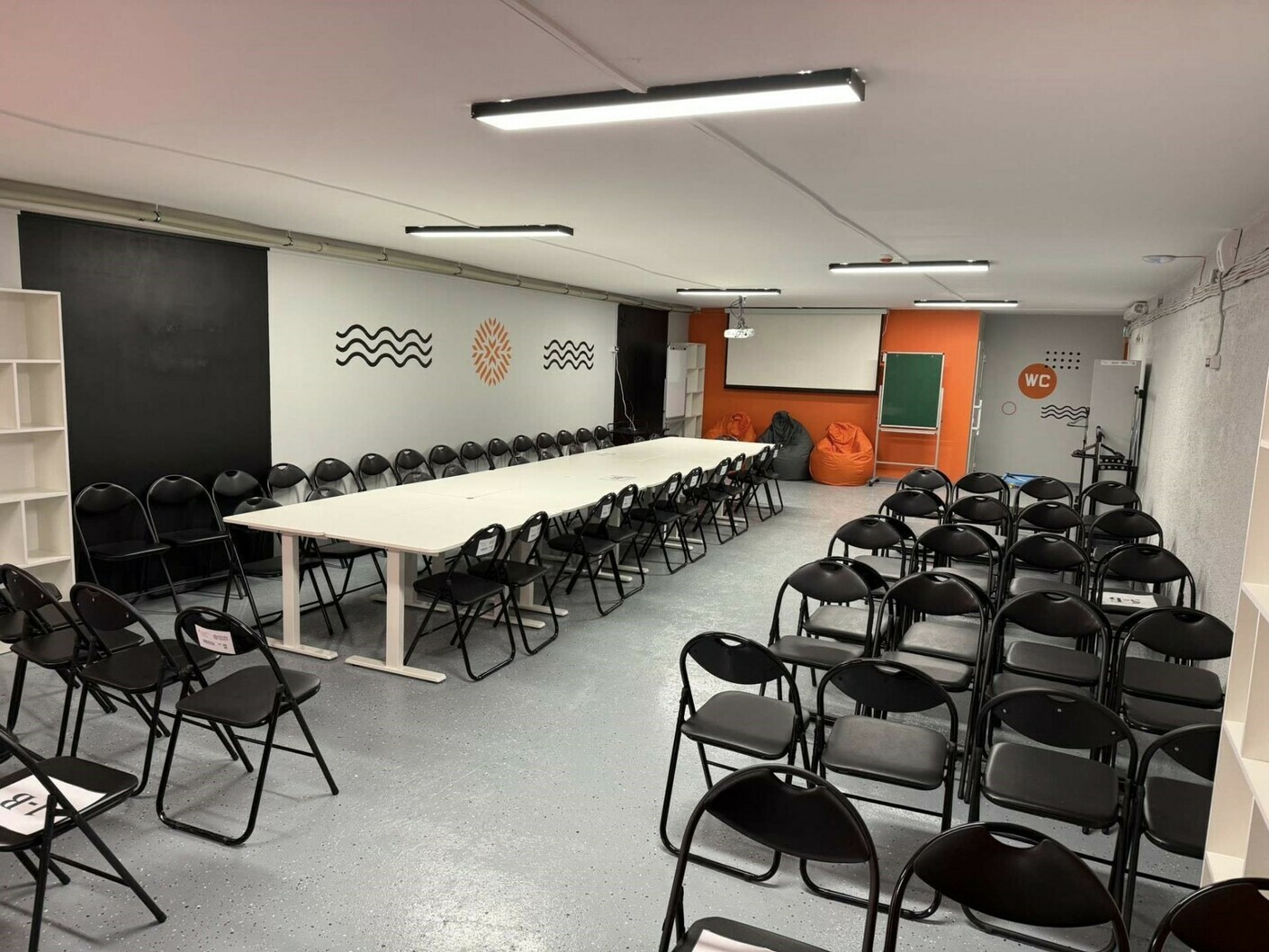 Finally, the bomb shelter was furnished with modern equipment and furniture to ensure a comfortable stay and the possibility of conducting lessons. It is equipped with computers and multimedia technology, as well as furniture for work and leisure, lighting and a fire extinguishing system.