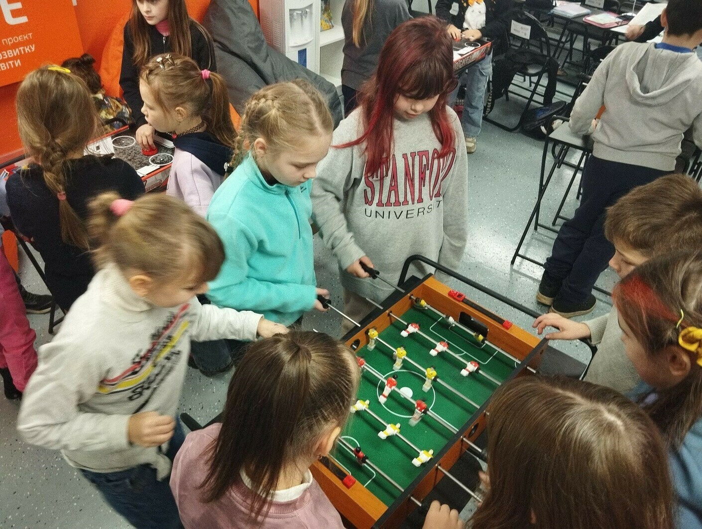 The bomb shelter at Gymnasium 13 is now safe, cosy, and comfortable. Librarians regularly check that there are interesting books available. There are also board games, an air hockey table, a table football set and an electronic basketball game.