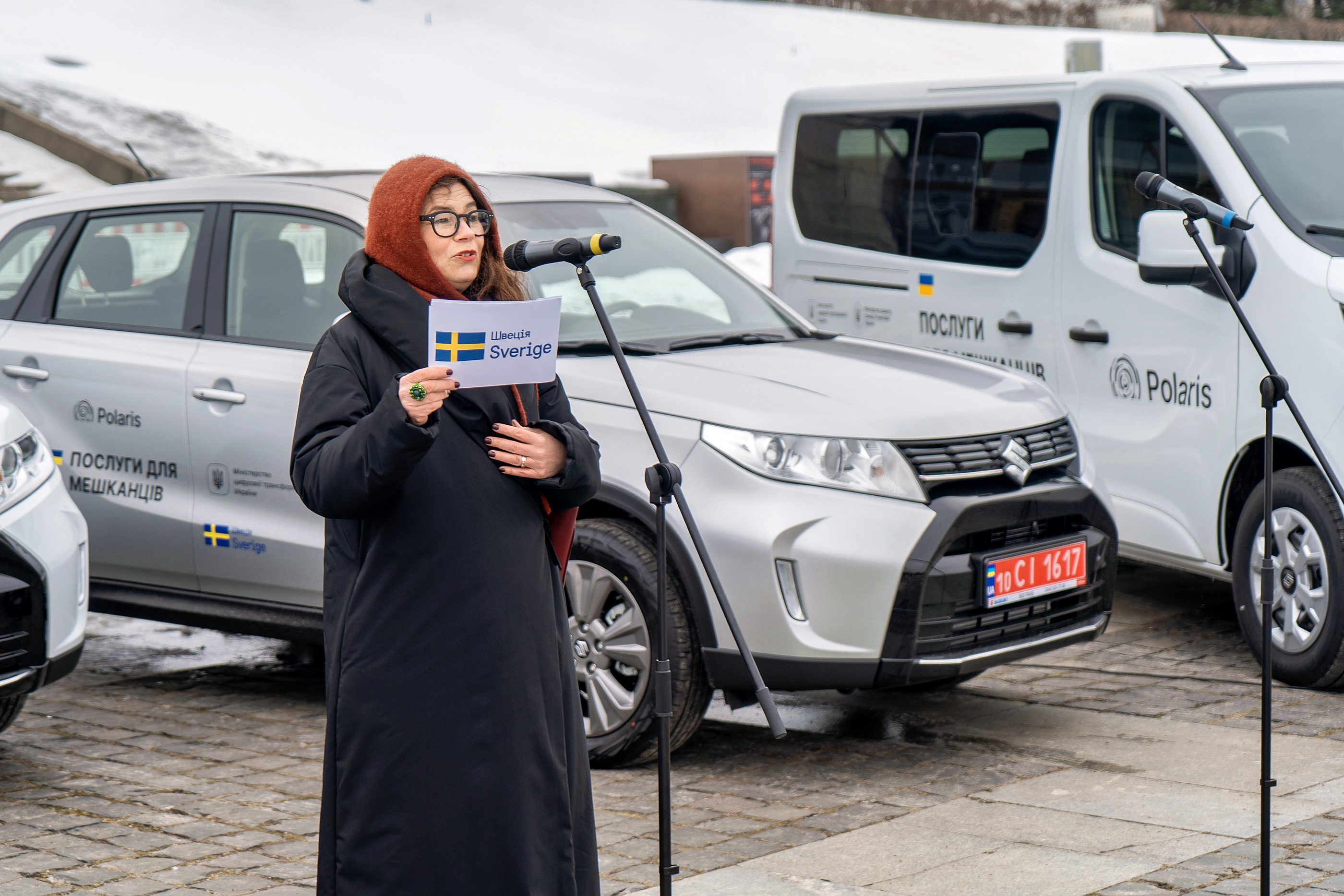 “Supporting Ukraine remains a priority for Sweden. As part of the Polaris Programme’s crisis support, six hromadas and one Oblast Military Administration have today received vehicles fully equipped for service delivery. These mobile units will enhance the provision of essential public services in war-affected hromadas,” said Ms. Elsa Håstad, Deputy Head of Mission, Embassy of Sweden in Ukraine.