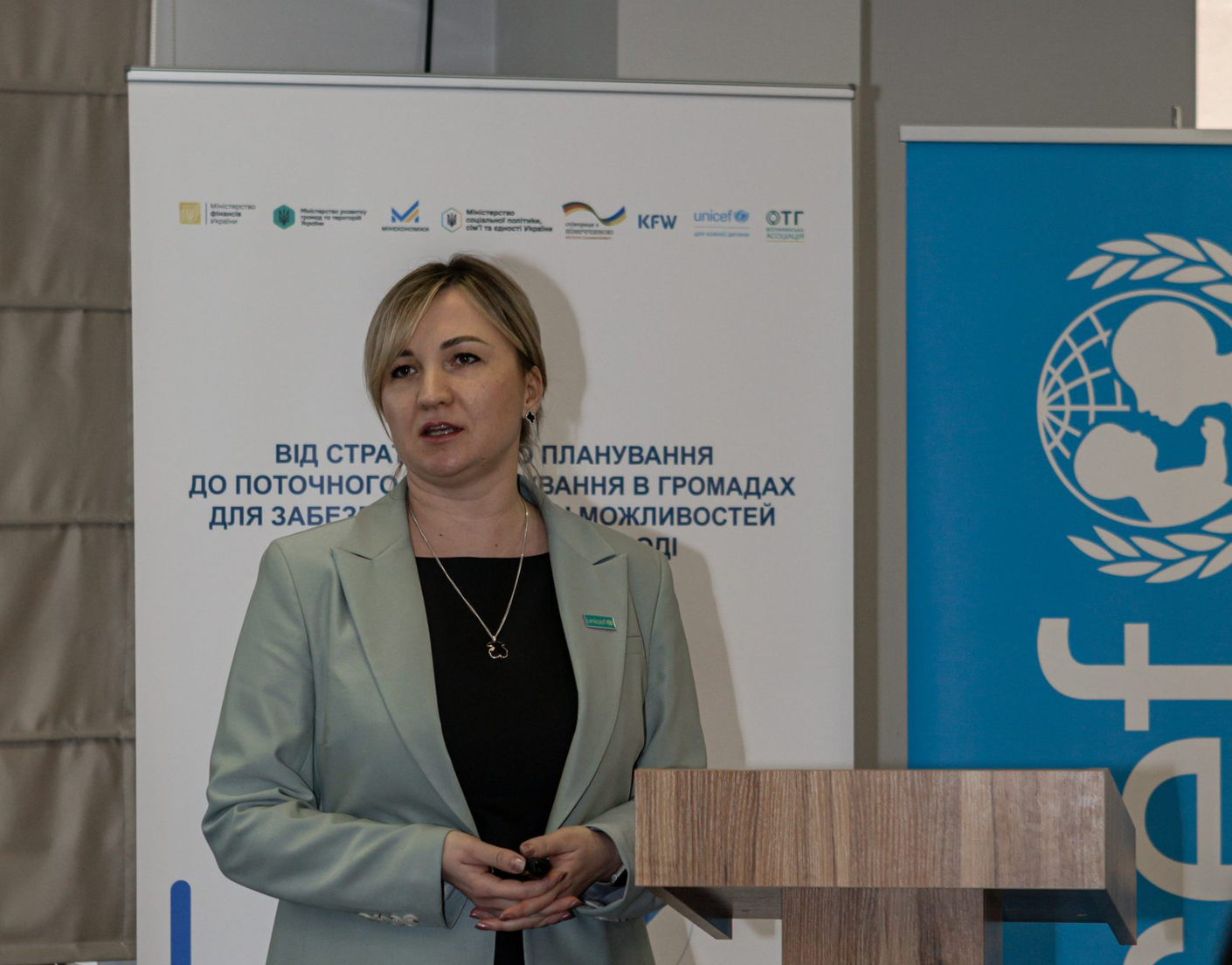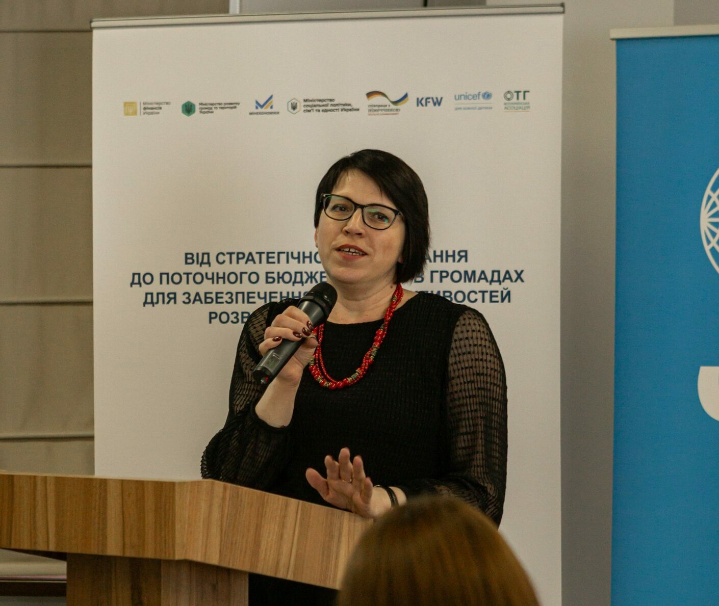 Юлія Сибірянська, менеджерка програм соціальної політики та управління публічними фінансами ЮНІСЕФ, представила підхід до управління публічними фінансами в інтересах дітей як ключовий інструмент сталого розвитку громад. Вона наголосила, що видатки на дітей і молодь — це не лише соціальні витрати, а стратегічні інвестиції у людський капітал і майбутнє громад, які мають найвищу довгострокову віддачу.