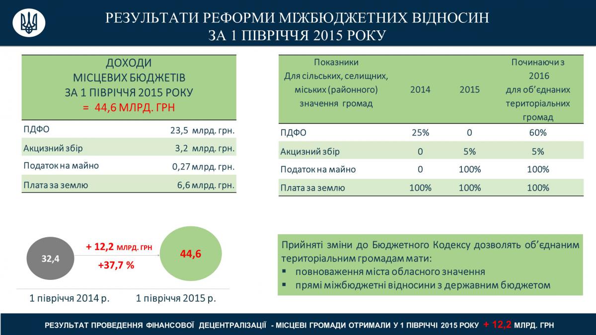 Про які конкретні здобутки реформи міжбюджетних відносин за перше півріччя 2015 року можна говорити?