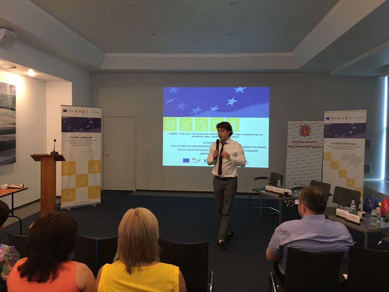 Серед основних спікерів заходу – Роман Матвійчук – експерт Компоненту 2. Програма U-LEAD, керівник-експерт проекту ЕС з модернізації 16 Центрів надання адміністративних послуг (ЦНАП) у Волинській, Львівській та Рівненських областях. Експерт проінформував учасників конференції про існуючі моделі, кроки створення та калькулятор витрат на ЦНАП.
