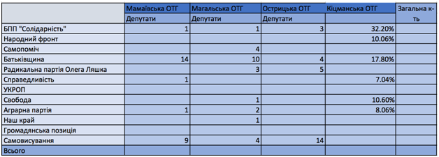 Чернівецький Центр розвитку місцевого самоврядування, створений за підтримки Програми «U-LEAD з Європою», та громадянська мережа «Опора» підбили підсумки виборів у чотирьох новостворених об’єднаних громадах області.