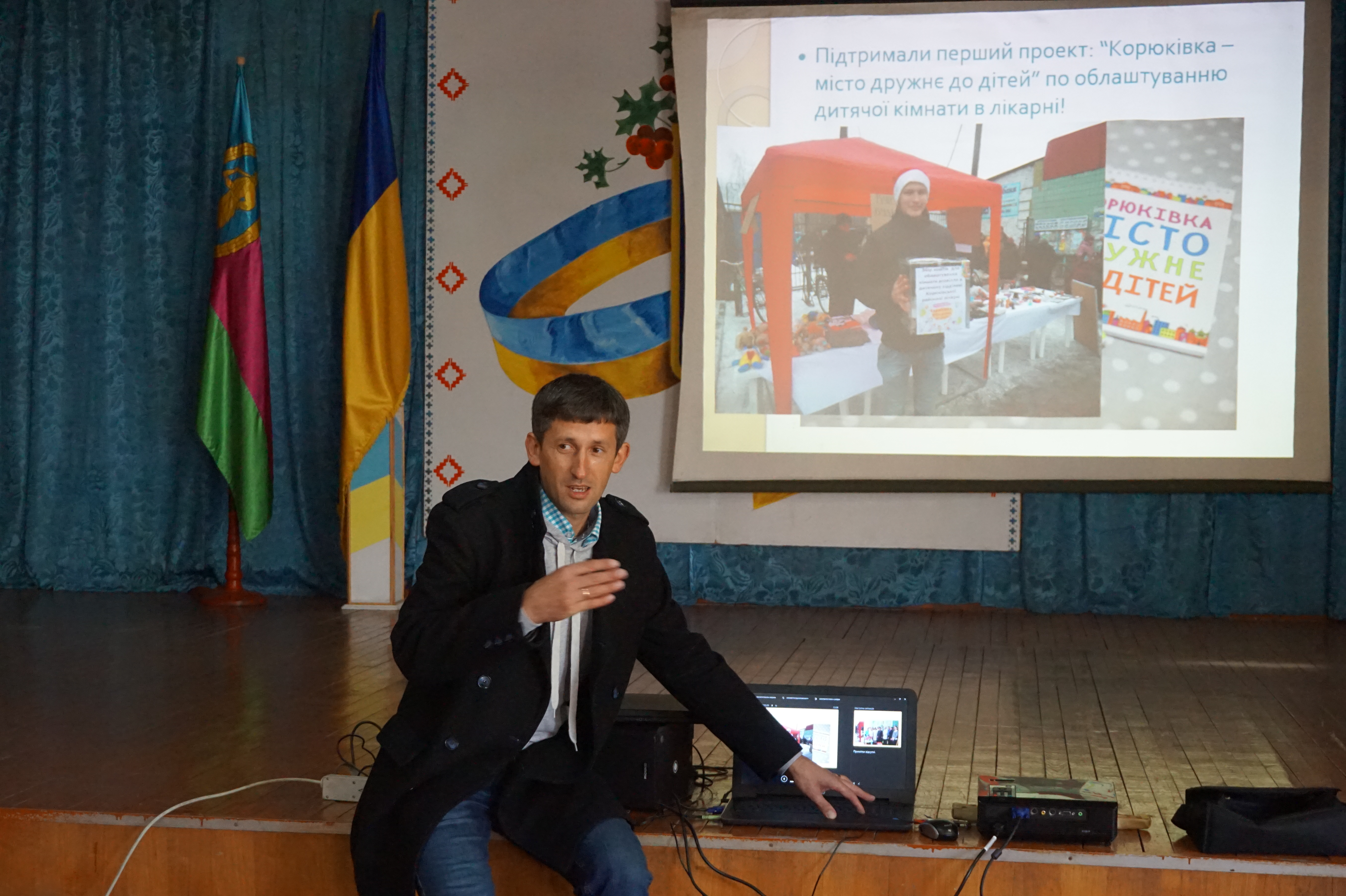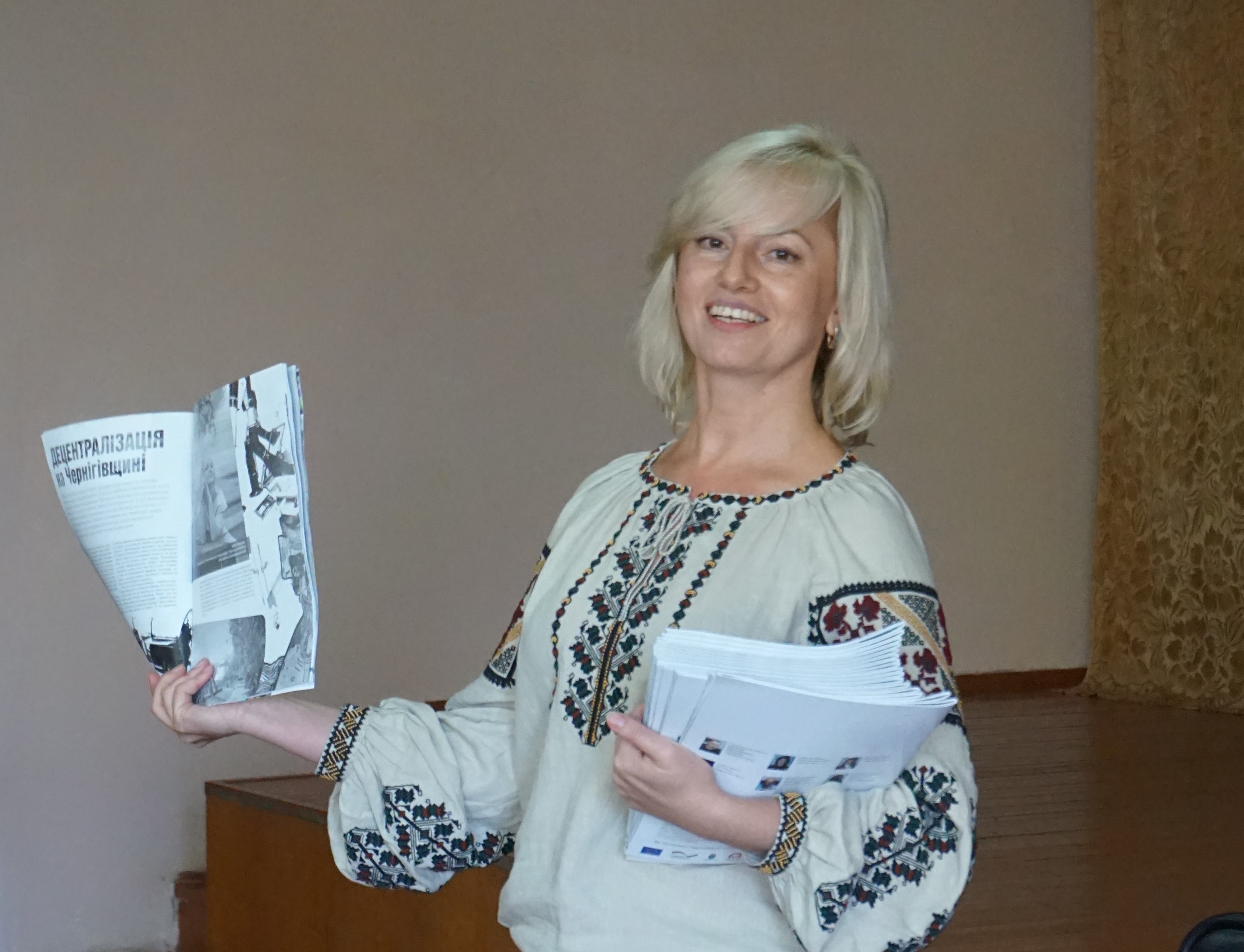 Ця зустріч була присвячена темі викликів, що стоять перед активними людьми у громадах, що вже створені чи з'являться вже цієї осені. Спікер зустрічі – директор Чернігівського відокремленого підрозділу Установи «Центр розвитку місцевого самоврядування» пані Ірина Кудрик презентувала досягнення центру та виклики, з якими зіткнулася Чернігівщина на шляху децентралізації.