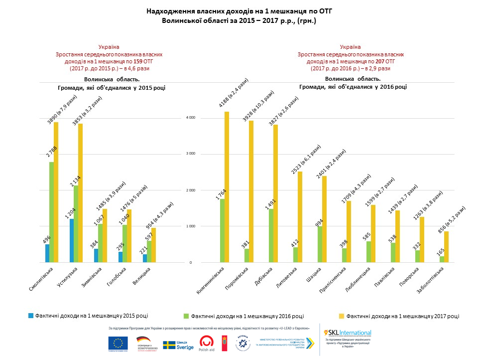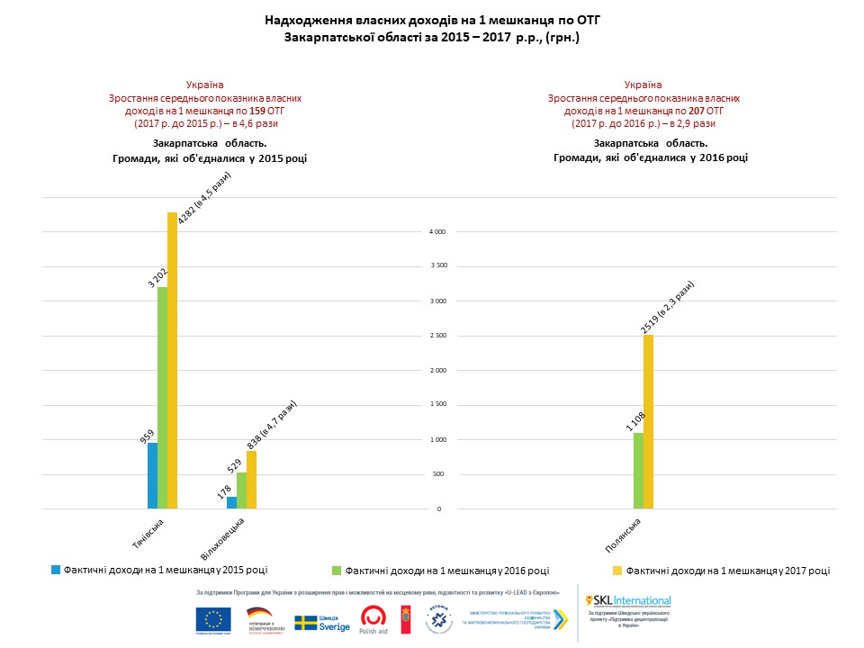 According to her, as a result of 2017, 159 AHs where the first elections were held in 2015, received UAH 4.4 billion of their own revenues. The average revenue indicator per capita over these hromadas was UAH 3170, which is 4.6 times more than that of in 2015.