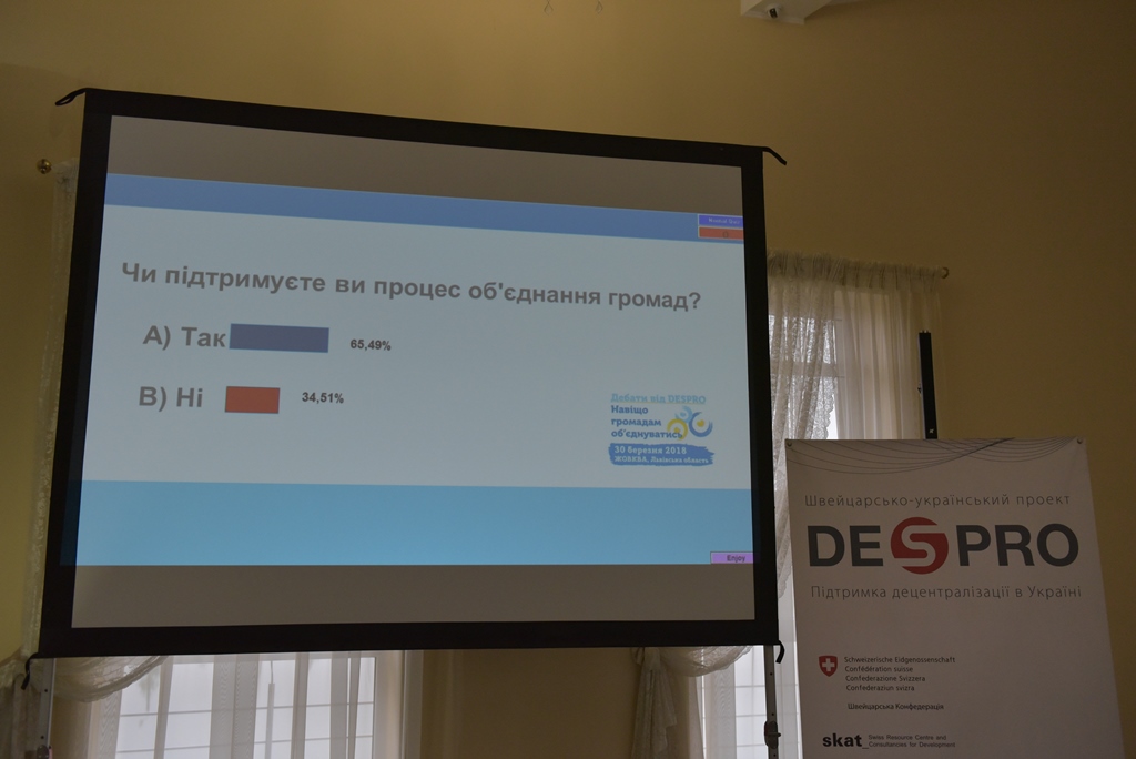These were the optimistic statements the public debates on the topic "Why should hromadas amalgamate?" began with. The event was organised by the Swiss-Ukrainian project "Decentralisation Support in Ukraine” (DESPRO) with the support of the Ministry of Regional Development, Construction, Housing and Communal Services of Ukraine, as well as the Zhovkva Town Council.