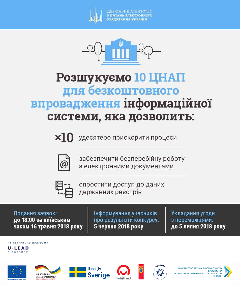 The State Agency for E-Governance of Ukraine invites the ASCs to submit their applications for piloting the Information System "Programme Complex for the Automation of the Provision of Administrative Services", developed under the U-LEAD with Europe project EGOV4UKRAINE.