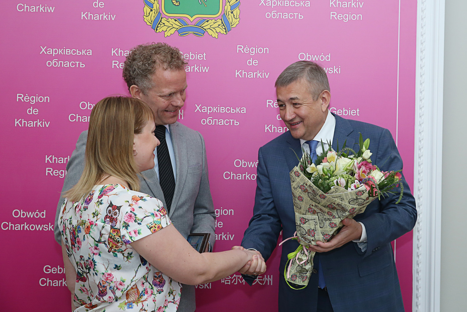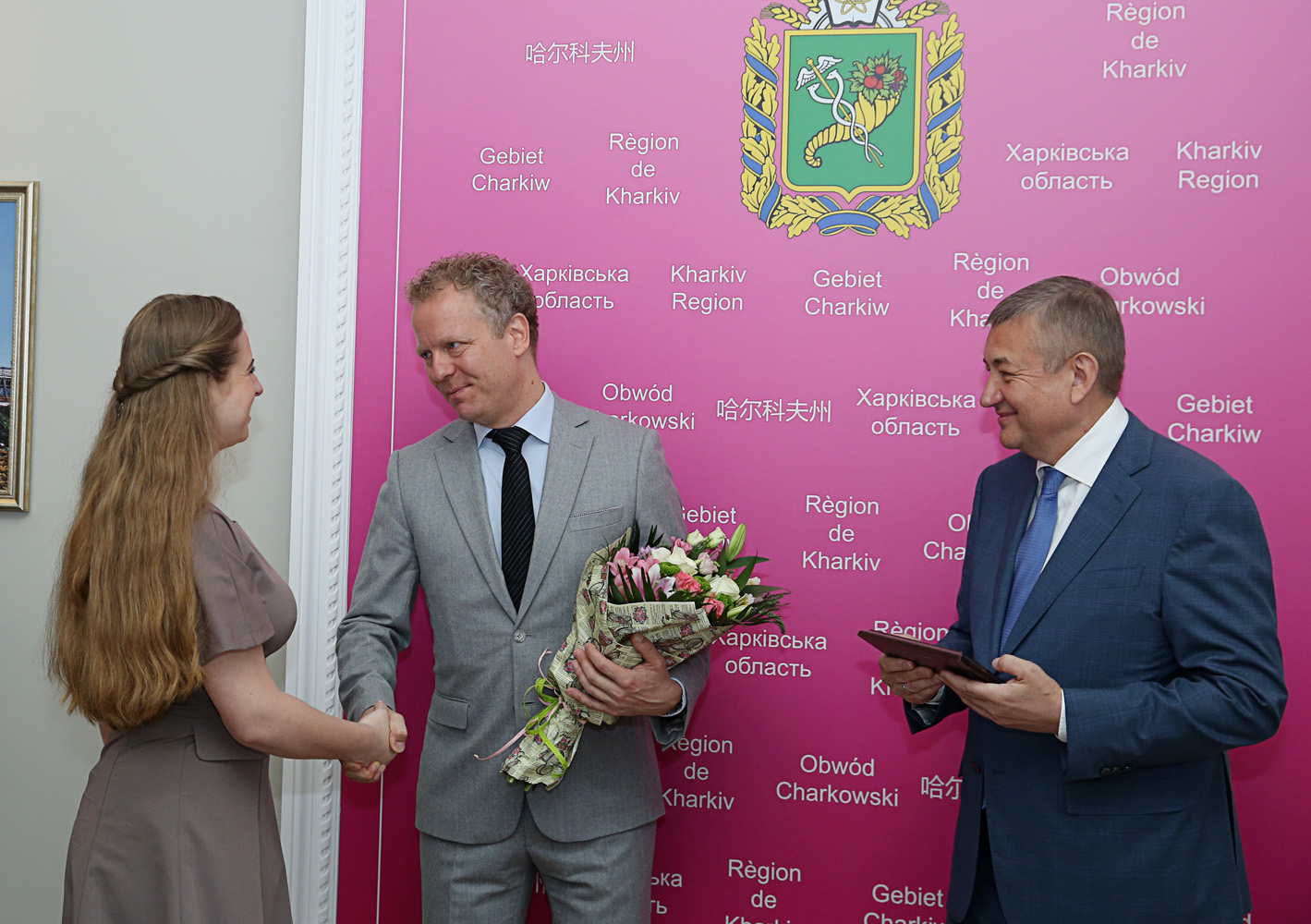 On the Day of Journalists, Mr Serhiy Chernov, Head of the Kharkiv Oblast Council, and Mr Моrten Enberg, Head of Office of the Council of Europe in Ukraine, Representative of the Secretary General in charge of the co-ordination of the co-operation programmes in Ukraine, rewarded Journalists who shared the best stories of hromada success in their printed, online, video and radio media.