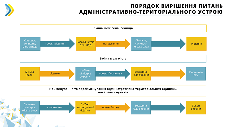 As it is known, the issue of administrative and territorial structure is settled in Ukraine by the Procedure, approved in 1981 by the Decree of the Presidium of the Verkhovna Rada of the Ukrainian SSR. This document does not comply with the current Constitution of Ukraine.