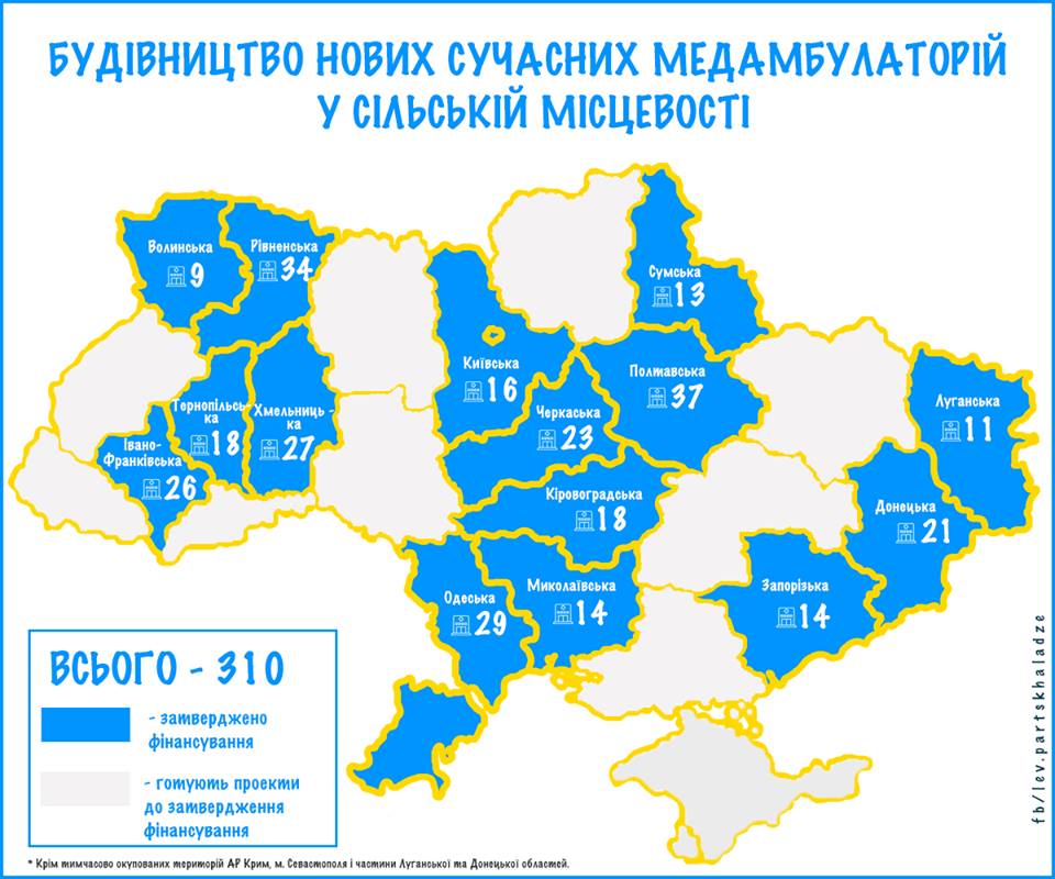 310 modern outpatient clinics will be built in rural areas in 15 regions of Ukraine. This is the first pool of projects, approved by MinRegion’s Order to be implemented through the subvention for the rural healthcare development, informed Hennadii Zubko, Vice Prime Minister – Minister of Regional Development, Construction, Housing and Communal Services of Ukraine.