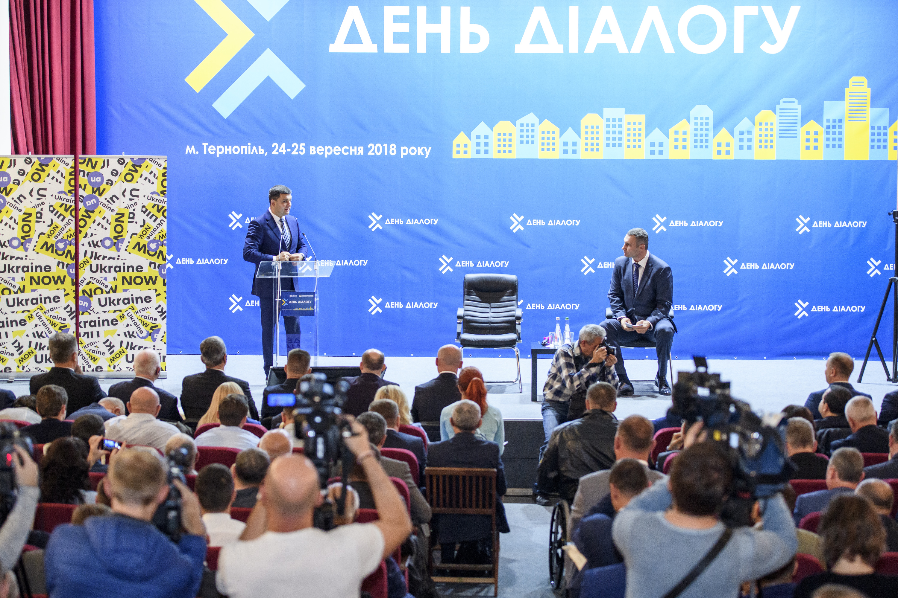 Decentralisation as a fundamental reform of transfer of administrative powers and financial possibilities will continue, but the local self-government is required to convert the transferred resource into a new quality of life for people, stated Prime Minister of Ukraine Volodymyr Groysman during the “Dialogue Day” forum of local self-government representatives. The forum was held in Ternopil, where the Head of Government is on a working visit on the 24th of September.