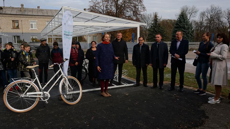 A bicycle parking facility and a cycling school were established at the IT Lyceum of the I-II degree within the framework of the Green Light for Cycling in Hromadas project, implemented by the U-LEAD with Europe Programme together with the Kyiv Association of Cyclists. The goal of the project is to improve the attitude of AHs towards cycling as an economical, sustainable and attractive transport for daily travel.