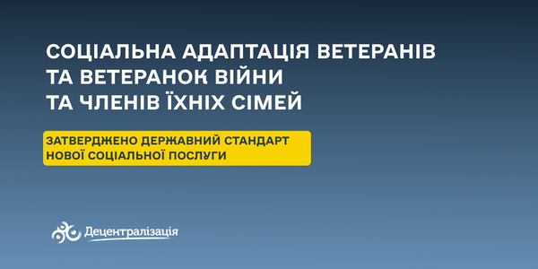 В Україні затверджено Державний стандарт нової соціальної послуги - соціальна адаптація ветеранів та ветеранок війни та членів їхніх сімей