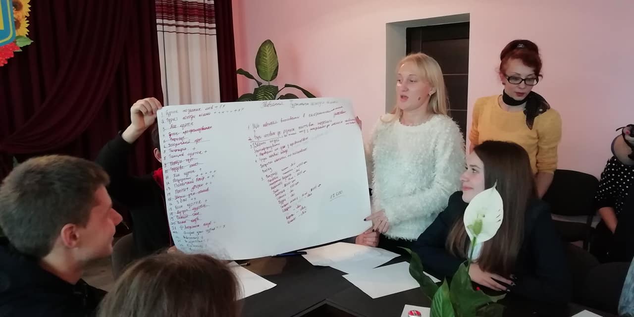 Тренінг передбачав пошук ідей розвитку молодіжного руху ОТГ та написання проектів на ці ідеї. За три години роботи чотири команди учнів згенерували більш як 60 різних ідей та написали 4 проекти.