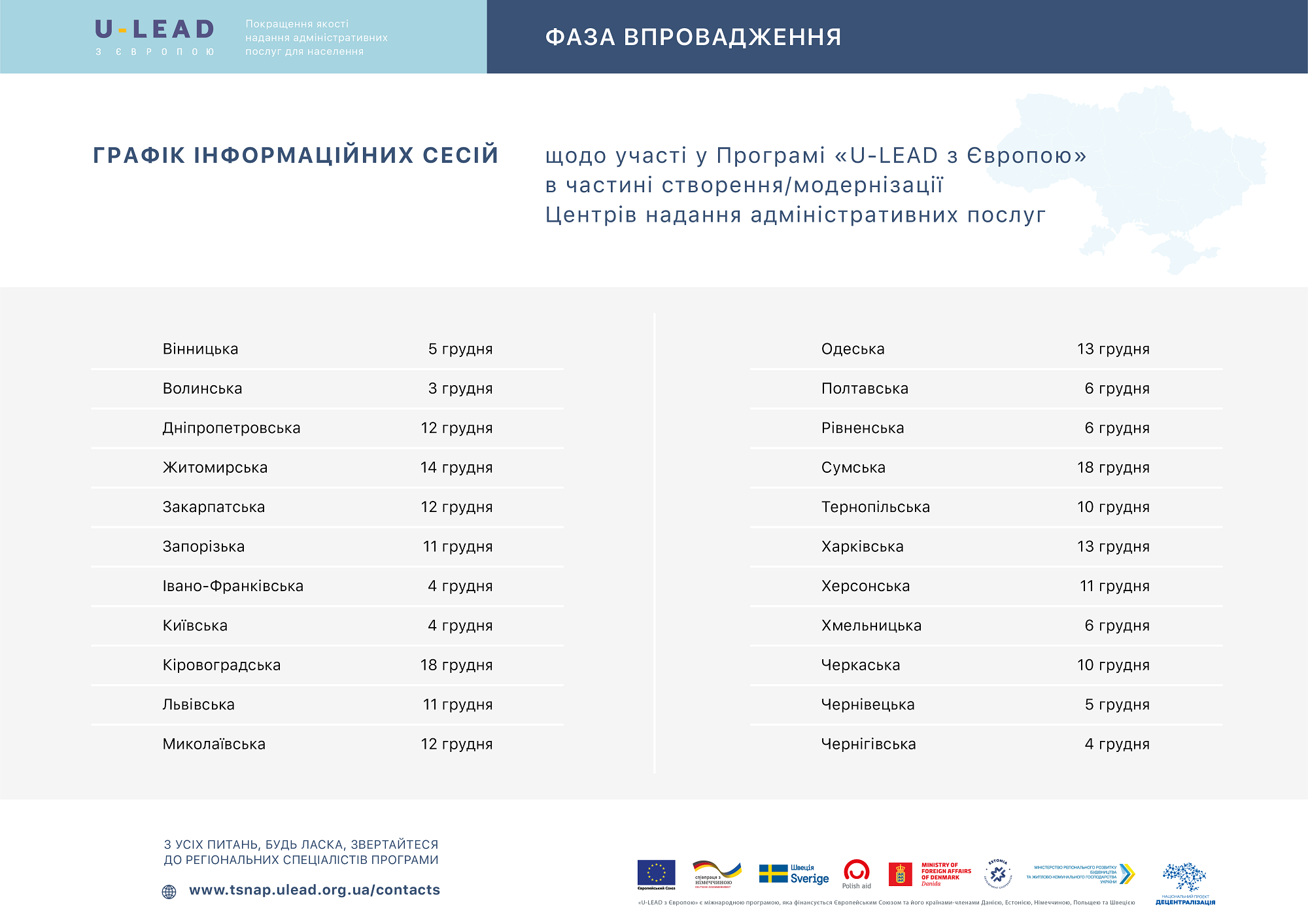 3-18 грудня в 22 областях України відбудуться інформаційні сесії щодо участі у Раунді 3 Програми «U-LEAD з Європою» в частині створення та модернізації ЦНАП.