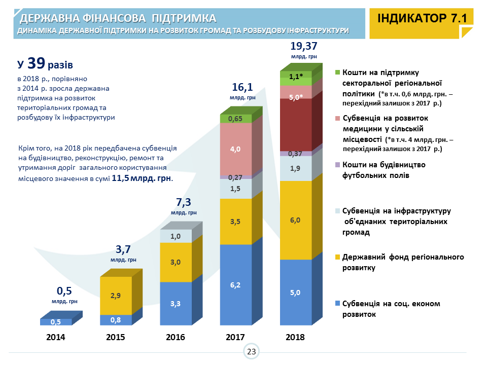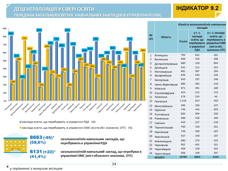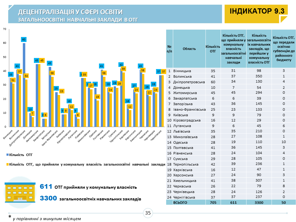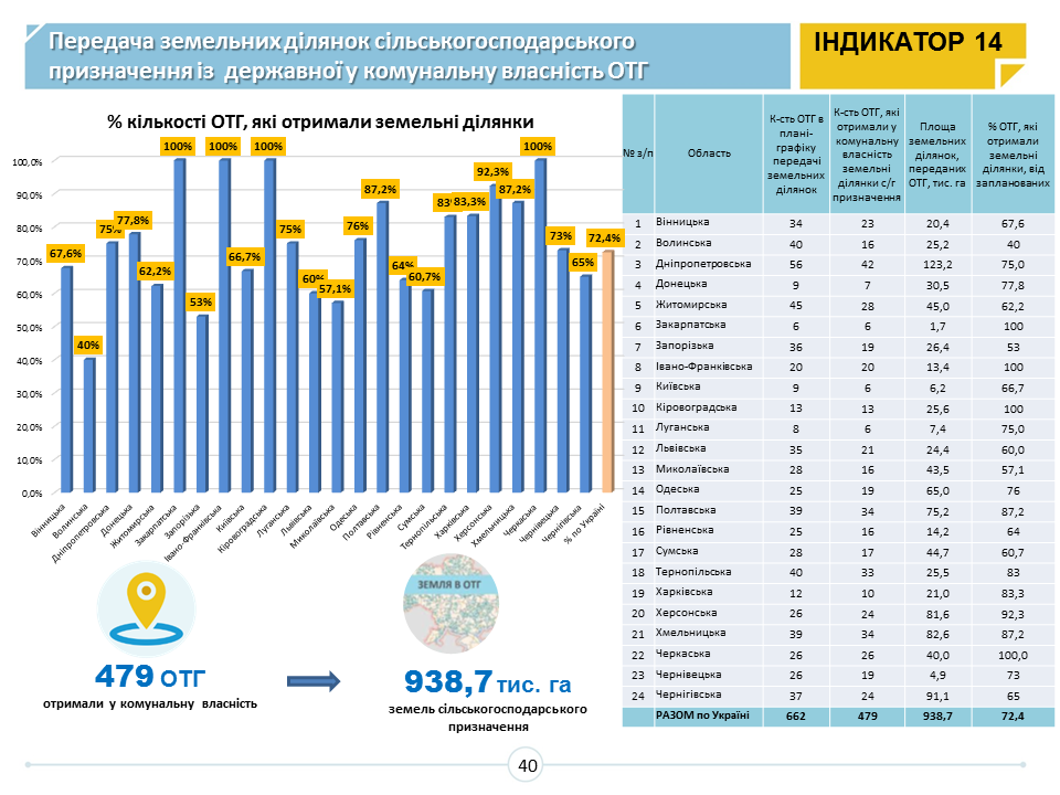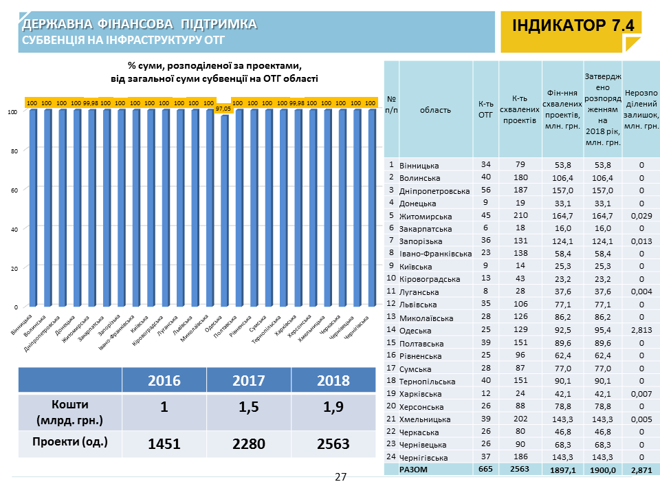 До 874 зросла кількість сформованих ОТГ, серед яких 22 ОТГ очікують рішення ЦВК про призначення перших місцевих виборів. Сформували громади і 24 міста обласного значення. На території об’єднаних громад проживає більше 9 млн людей.