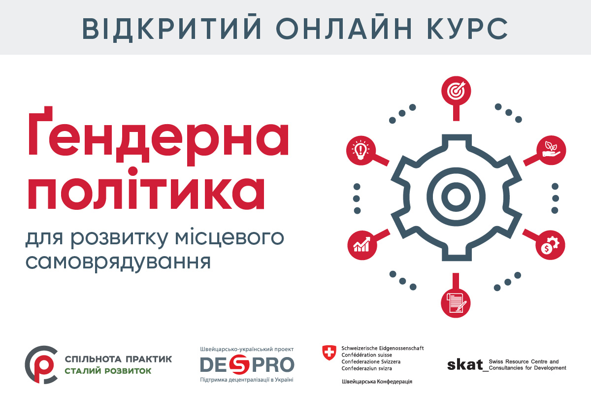 В межах напряму підтримки ґендерної рівності Швейцарсько-український проект «Підтримка децентралізації в Україні» DESPRO запустив онлайн-курс «Ґендерна політика для розвитку місцевого самоврядування» на Спільноті практик.