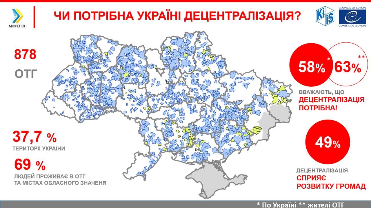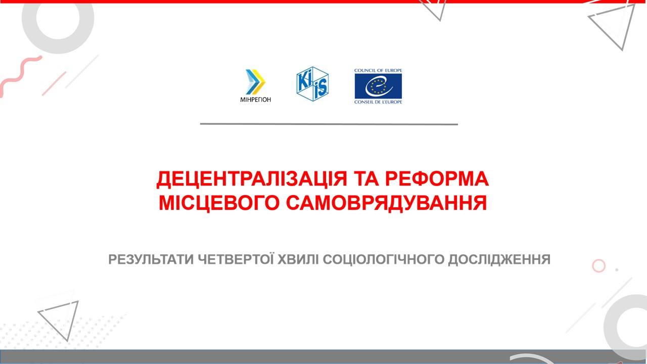 Соціологічне дослідження (по усій Україні та по б'єднаним громадам) було здійснене Київським міжнародним інститутом соціології (КМІС) на замовлення Програми Ради Європи «Децентралізація і реформа місцевого самоврядування в Україні» у співпраці з експертами РЄ та Мінрегіоном.