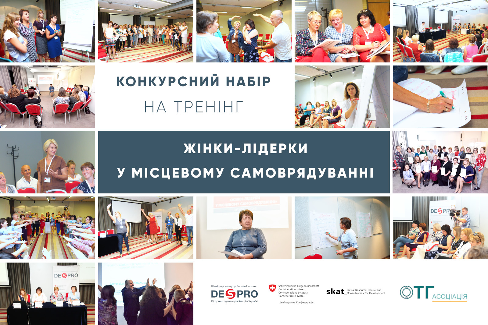 Швейцарсько-український проект “Підтримка децентралізації в Україні” DESPRO у партнерстві з Асоціацією об’єднаних територіальних громад оголошують конкурсний набір для участі у II тренінгу «Жінки-лідерки місцевого самоврядування».