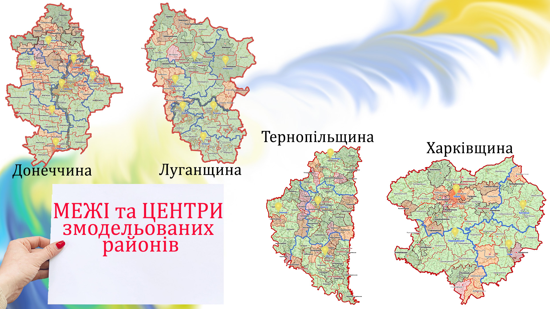 Експерти з огляду на сучасні реалії змоделювали новий субрегіональний рівень управління в згаданих областях, істотно скоротивши кількість нинішніх районів (на Харківщині і Тернопольщині пропонується утворити по чотири, на Донеччині сім, на Луганщині – шість районів). Водночас вони врахували в своїх модельних напрацюваннях недоліки вже існуючого хаотичного розміщення міжрайонних представництв ЦОВВ. І запропонували рішення, які, на їхню думку, зроблять державні адміністративні послуги максимально доступними і зручними для всіх жителів області.