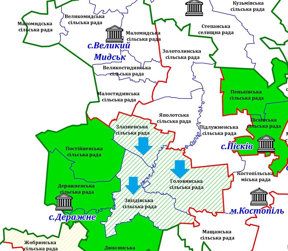 Три територіальні громади Костопільського району Рівненщини розпочали процес об’єднання в одну – Головинську ОТГ. Окрім Головинської до об’єднання увійдуть Злазненська та Звіздівська сільські громади.
