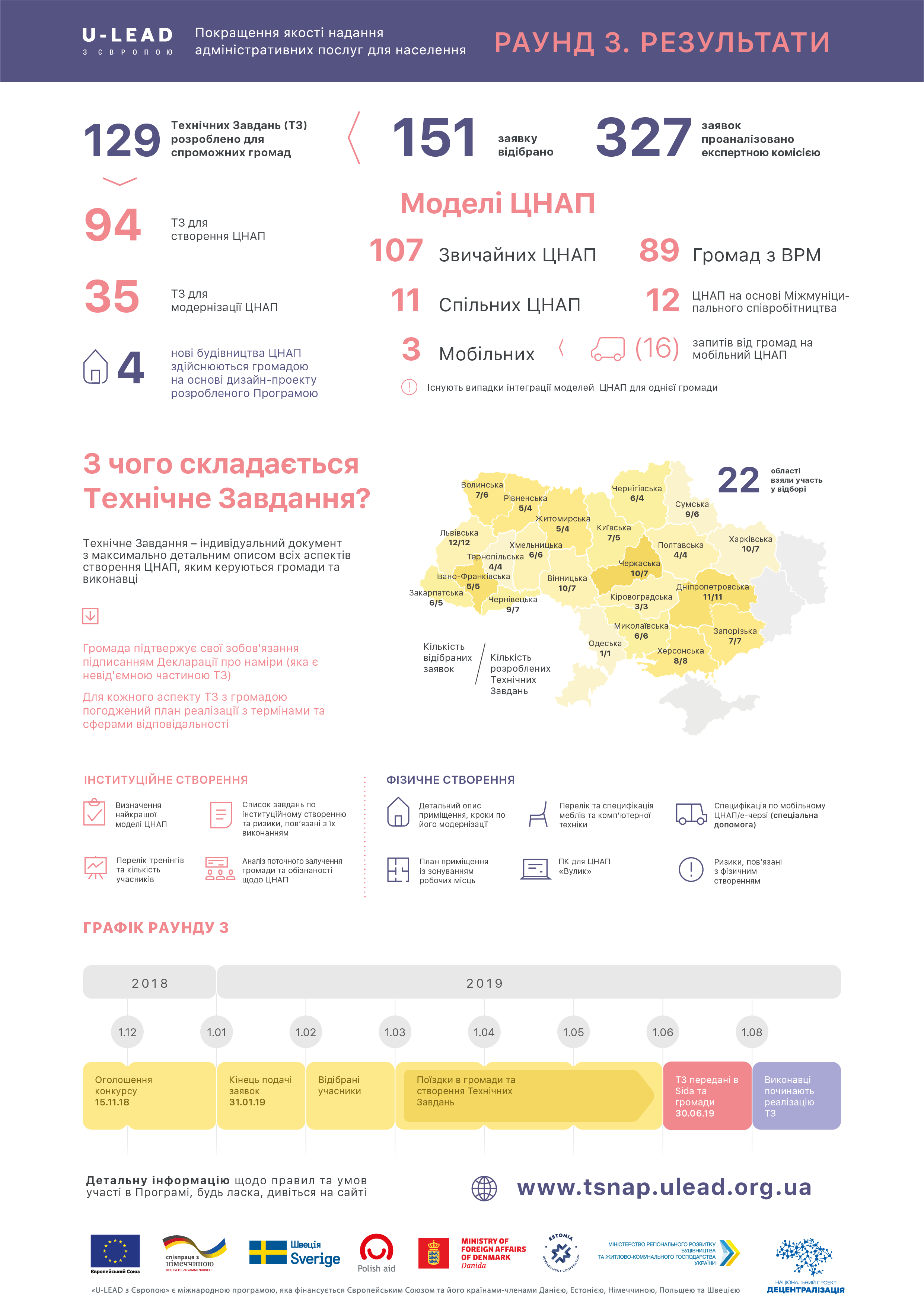 У листопаді 2018 року команда напряму з покращення якості адміністративних послуг Програми «U-LEAD з Європою» оголосила третій раунд відбору громад для надання допомоги у модернізації та створенні ЦНАП. Комісія з відбору у складі експертів Програми, представників Секретаріату Кабінету Міністрів України, Мінрегіону та Мінекономрозвитку проаналізувала 327 заявок із 22 областей України та відібрала 151 заявку для подальшого аналізу спроможності громад та розробки Технічних Завдань для створення чи модернізації ЦНАП.