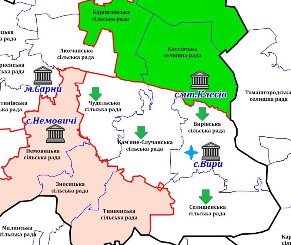 - розпорядження №701 - затверджено висновок для Вирівської, Кам'яне-Случанської, Селищенської та Чудельської сільських рад Сарненського району