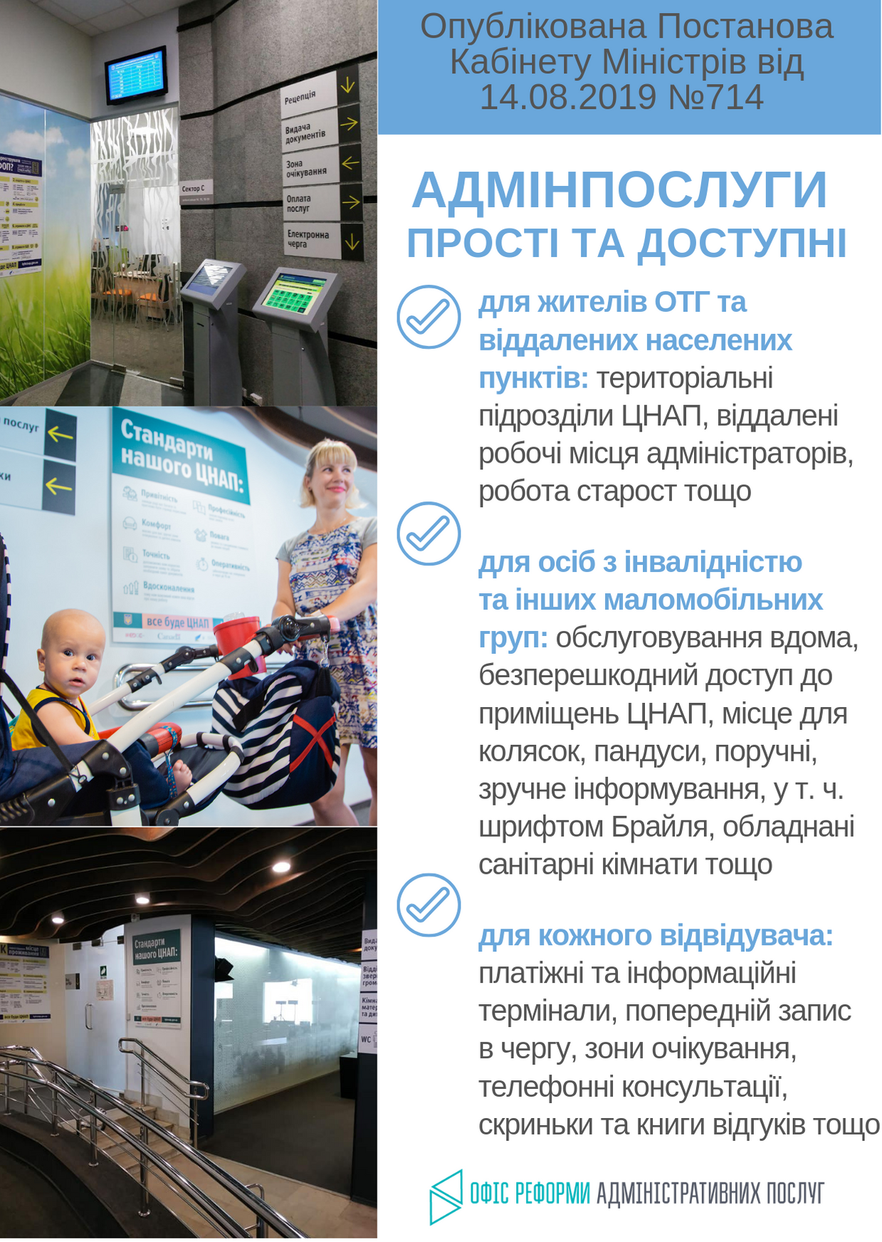 Опублікована Постанова Кабінету Міністрів від 14.08.2019 №714, яка вдосконалює надання адміністративних послуг. Проєкт Постанови був розроблений Мінекономрозвитку спільно з Офісом реформи адмінпослуг (проєкт EDGE).