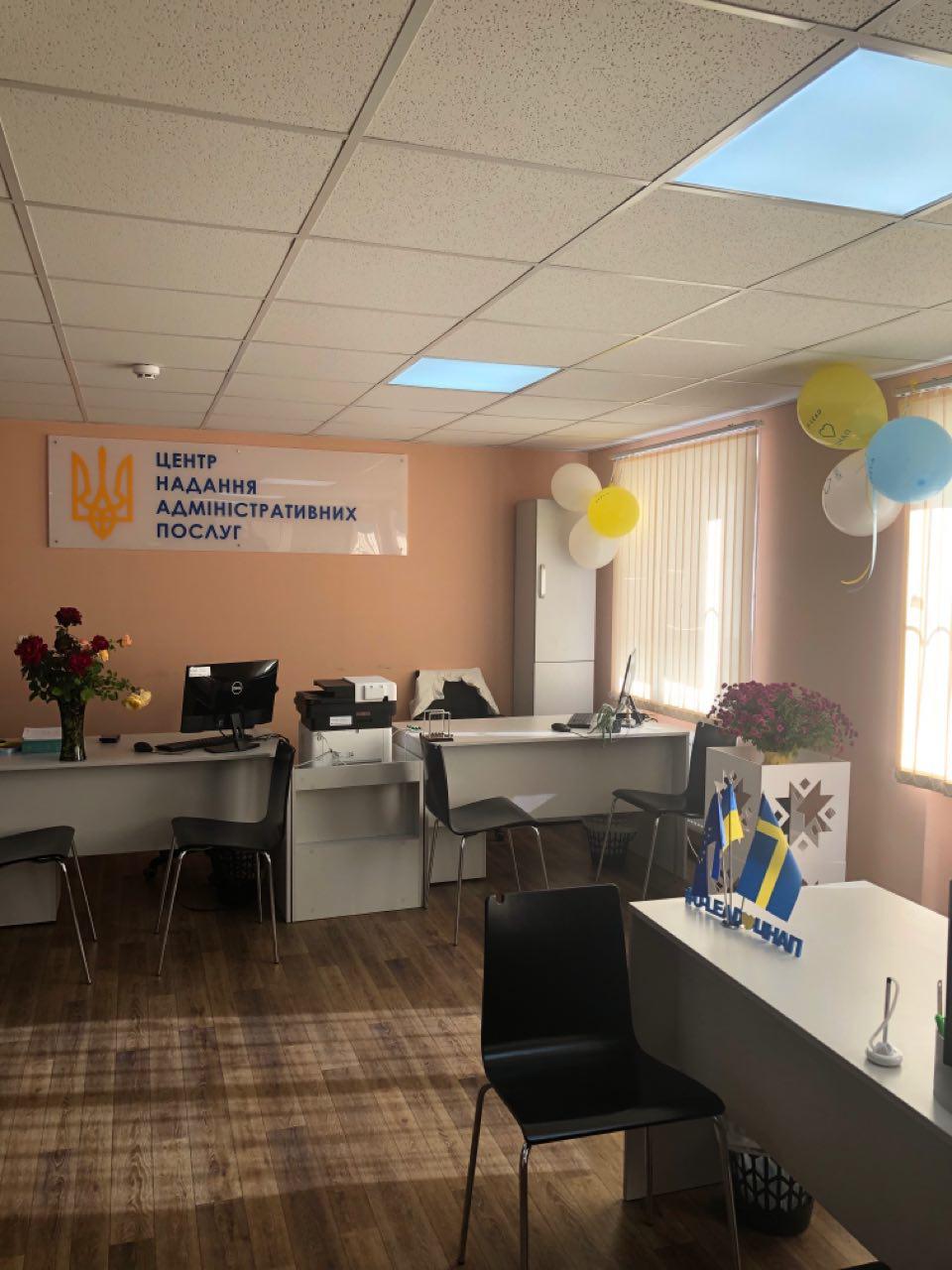Допомогу в інституційному створенні, модернізації центру та устаткуванні частини  робочих місць ЦНАП меблями та IT технікою, громаді надала Програма «U-LEAD з Європою». Також, персонал пройшов курс тренінгів за п’ятимодульною системою, яку розробили шведські та українські експерти Програми.