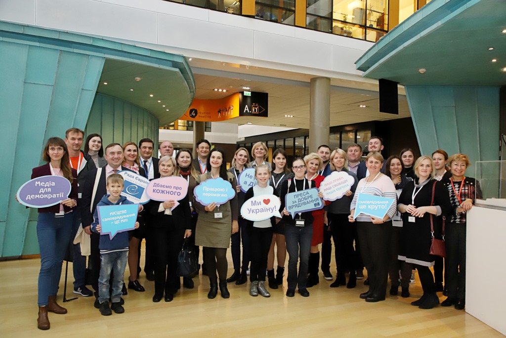 Однією з найбільш численних на Форумі була делегація з України – переможці Всеукраїнського конкурсу журналістських робіт «Реформування місцевого самоврядування та територіальної організації влади», головним організатором якого виступає Міністерство розвитку громад та територій України (детальніше про переможців можна дізнатись тут і тут), та молодіжні колективи – переможці номінації “Місцеве самоврядування – це ми!” Міжнародного дитячого медіафестивалю «Дитятко». Обидва конкурси є щорічними та підтримуються Програмою Ради Європи «Децентралізація і реформа місцевого самоврядування в Україні», до якої у 2019 році долучився Координатор проектів ОБСЄ в Україні.