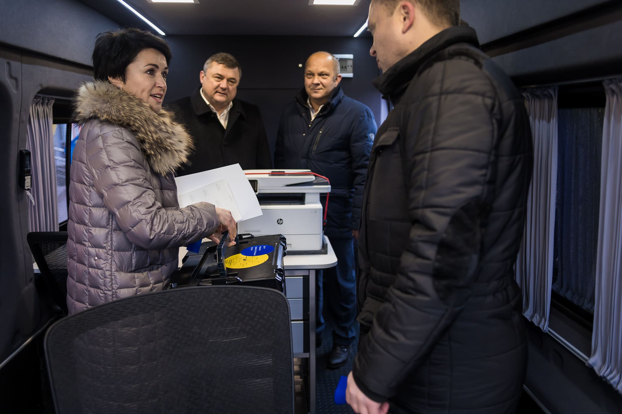 Мобільний Центр надання адміністративних послуг – це спеціально обладнаний автомобіль, у якому облаштовані два робочі місця адміністраторів та три місця для відвідувачів. Прийом громадян здійснюється всередині транспортного засобу, обладнаного системами обігріву та кондиціонування повітря, компактний пандус дозволяє обслуговувати осіб з інвалідністю в автомобілі. Також ЦНАП обладнаний мобільною валізою для отримання послуг на дому.