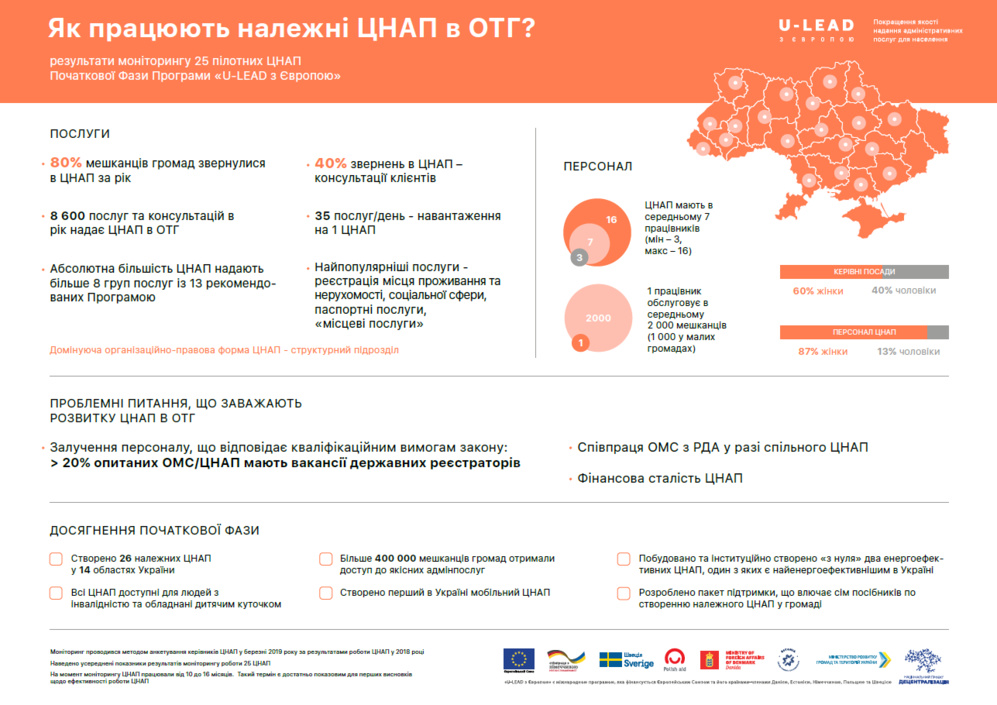 Поки зарано робити висновки стосовно їх діяльності. Разом з тим, завдяки річному моніторингу ЦНАП, створених в рамках Початкової Фази, маємо певні орієнтири щодо ефективної роботи: