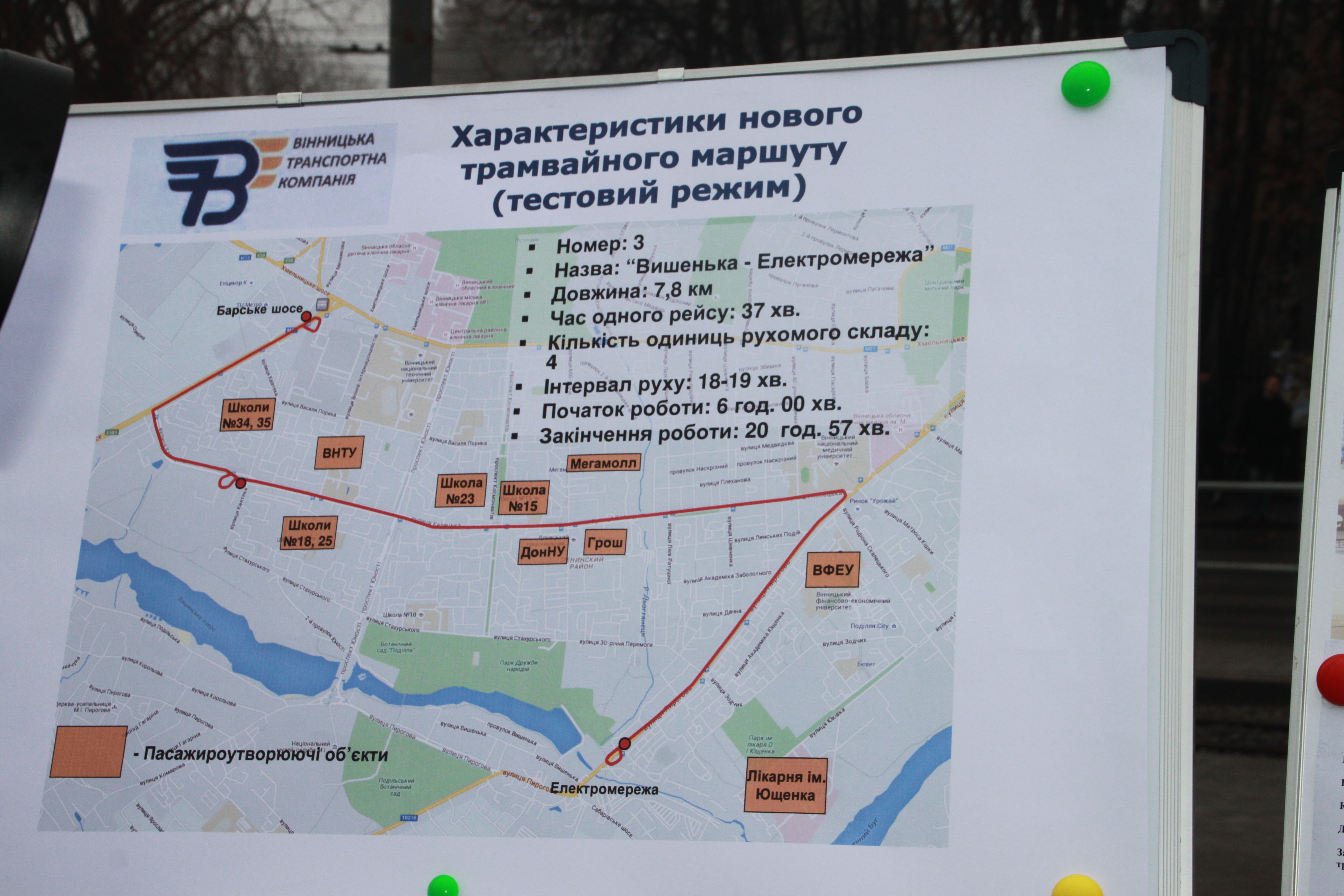 У Вінниці відкрили новий трамвайний маршрут №3 «Електромережа - Вишенька». Основна частина вартості проекту профінансована з Державного фонду регіонального розвитку (ДФРР) - 9 млн грн. Ще понад 500 тис. грн. – кошти міського бюджету.