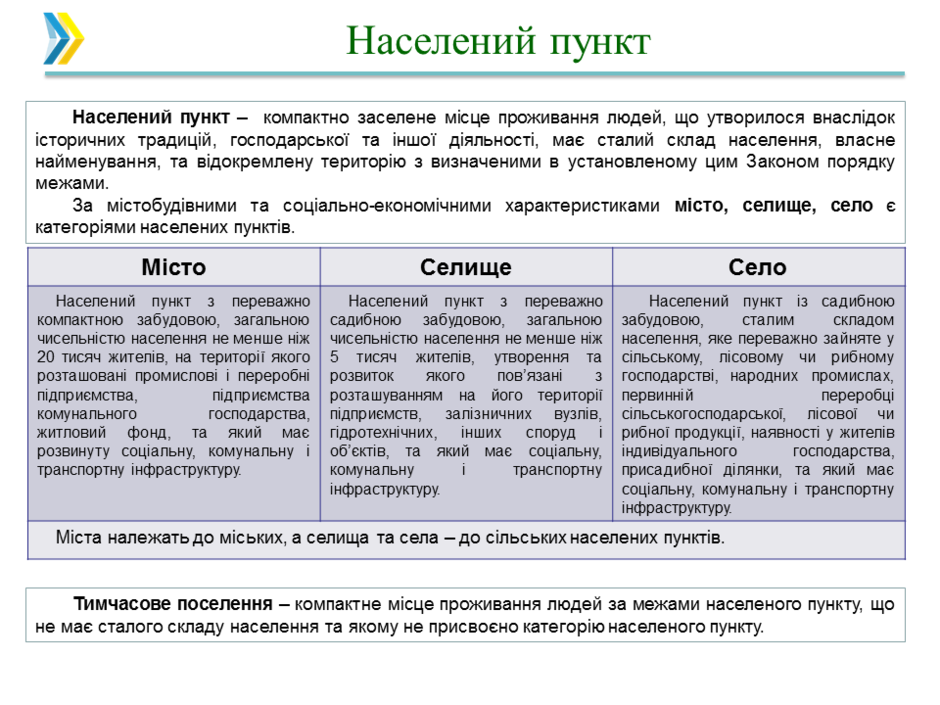 І, нарешті, врегульовуються питання щодо Державного реєстру адміністративно територіальних одиниць та населених пунктів.