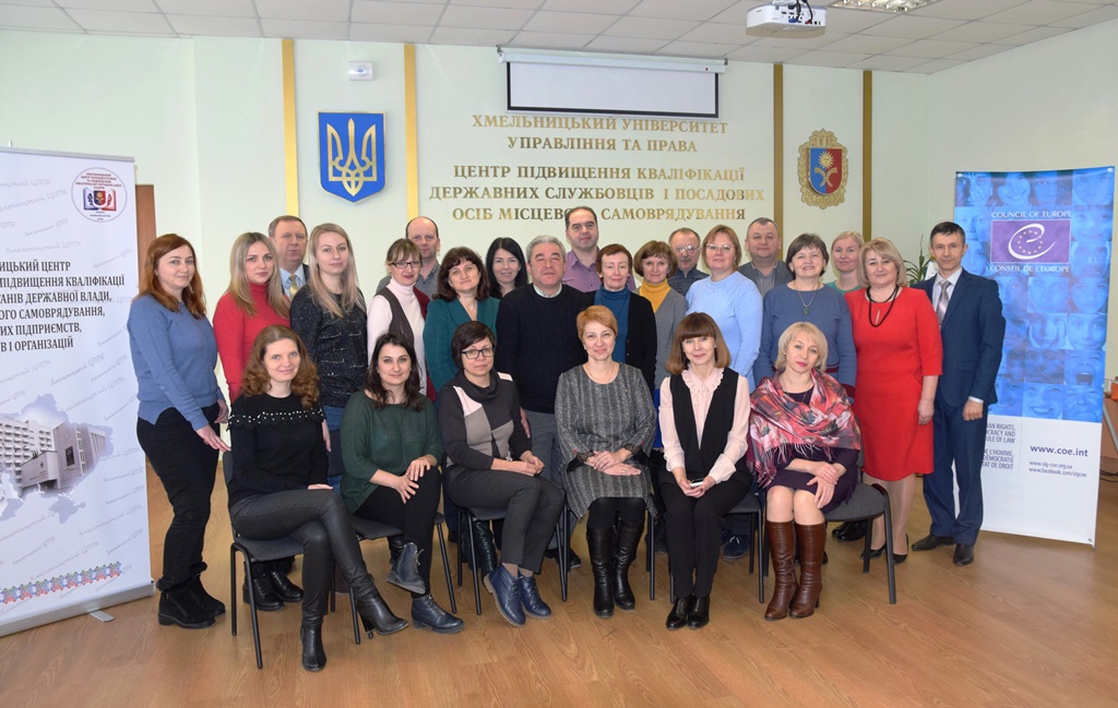 11-13 лютого 2020 року за експертної підтримки Програми Ради Європи «Децентралізація і реформа місцевого самоврядування в Україні» в Хмельницькому центрі перепідготовки та підвищення кваліфікації працівників органів державної влади, органів місцевого самоврядування, державних підприємств, установ і організацій проведена 1 сесія навчання представників органів місцевого самоврядування за спеціальною професійною (сертифікатною) програмою «Сучасні інструменти управління людськими ресурсами в органах місцевого самоврядування». Друга сесія програми відбудеться 6-9 квітня 2020 року.