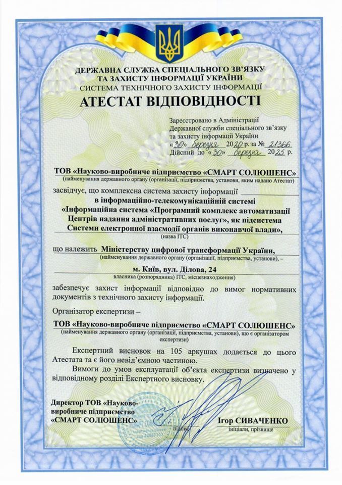 Центри надання адміністративних послуг можуть бути впевнені у захищеності даних, які проходять через інформаційну систему «Вулик». Вона отримала Атестат відповідності Державної служби спеціального зв’язку та захисту інформації.