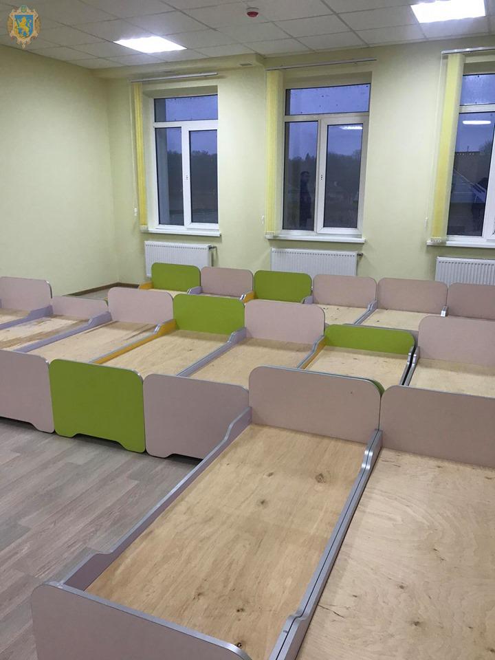 Станом на січень 2020 року, завершено облаштування приміщень для вікових груп дітей – осередки, що включають: спальні, ігрові кімнати, окремі санвузли, буфетну, 2 музичних зали, 2 спортивних зали, приміщення навчальних занять, медичні приміщення, службово-побутові приміщення, харчоблок з відділами, пральне приміщення, а також влаштування зон для прогулянок, 8 ігрових та спортивних майданчиків з окремими виходами для кожної групи, 4 альтанки.