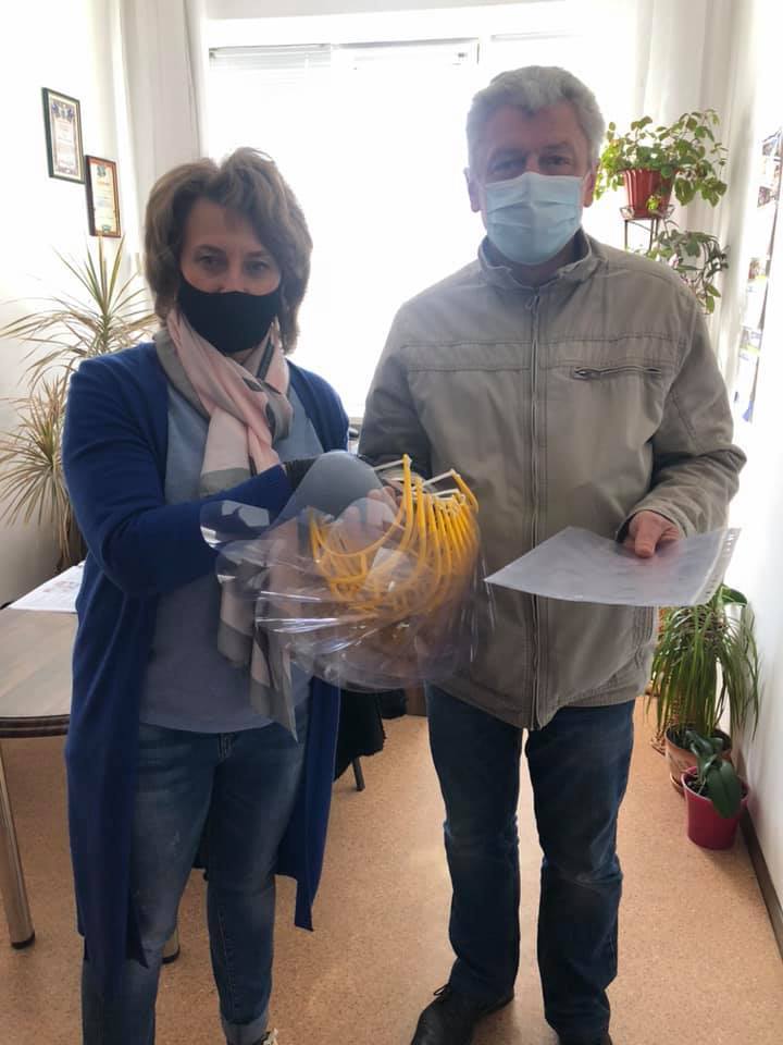 «Це добре, що в МРЦ ми можемо забезпечити повний цикл виготовлення захисних щитків. Нам не потрібно замовляти десь окремі деталі, адже у нас є власне обладнання, це економить час, який на сьогодні важливий. Макет захисних щитків взяли із вільно доступних в інтернеті джерел, переробили передню частину обідка для запобігання запотіванню екрана», — розповідає Василь Назарчук, директор Баранівського МРЦ.