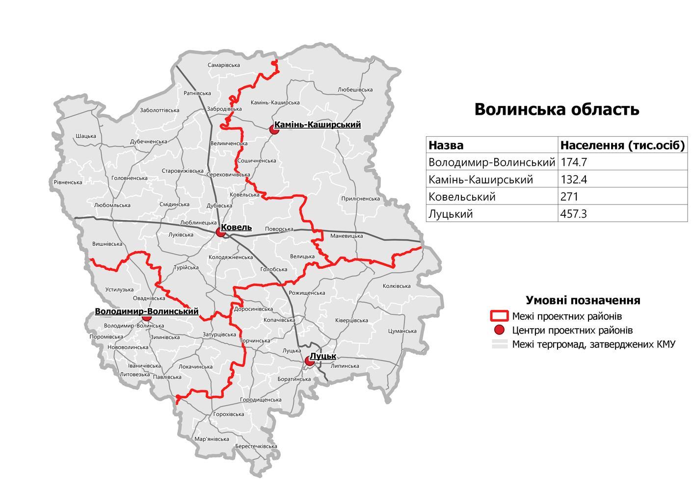 Володимир-Волинський район (з адміністративним центром у місті Володимир-Волинський) у складі територій Володимир-Волинської міської, Затурцівської сільської, Зимнівської сільської, Іваничівської селищної, Литовезької сільської, Локачинської селищної, Нововолинської міської, Оваднівської сільської, Павлівської сільської, Поромівської сільської, Устилузької міської територіальних громад, затверджених Кабінетом Міністрів України;