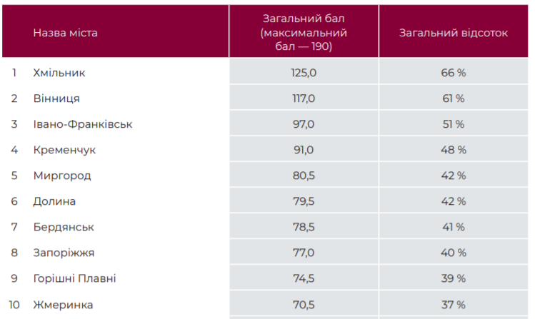 Перша десятка рейтингу найдемократичніших міст за цим дослідженням виглядає так: