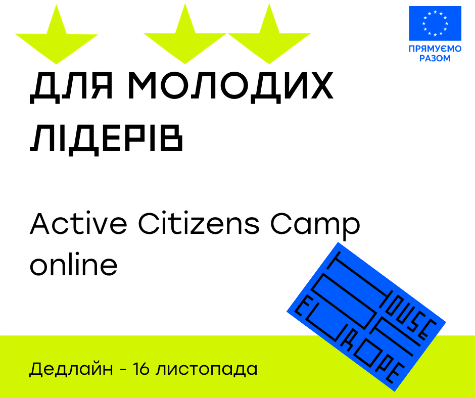 Проект ЄС House of Europe проводить конкурс для молодих лідерів на участь в онлайн-тренінгу Active Citizens Camp на тему: «Ефективні комунікації в громаді – як бути почутим».